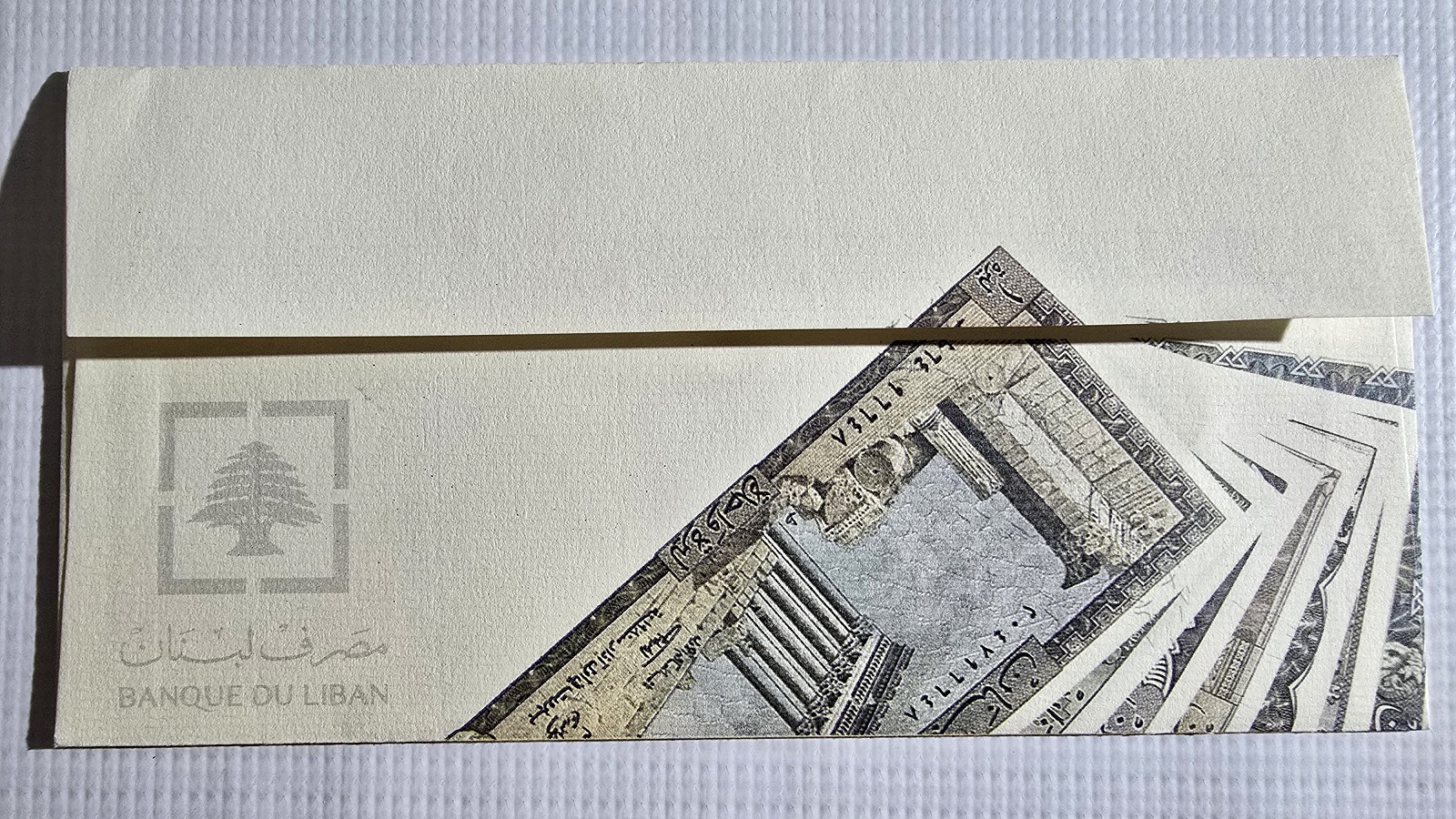 المجموعة موضوعة داخل مظروف إصدار مصرف لبنان