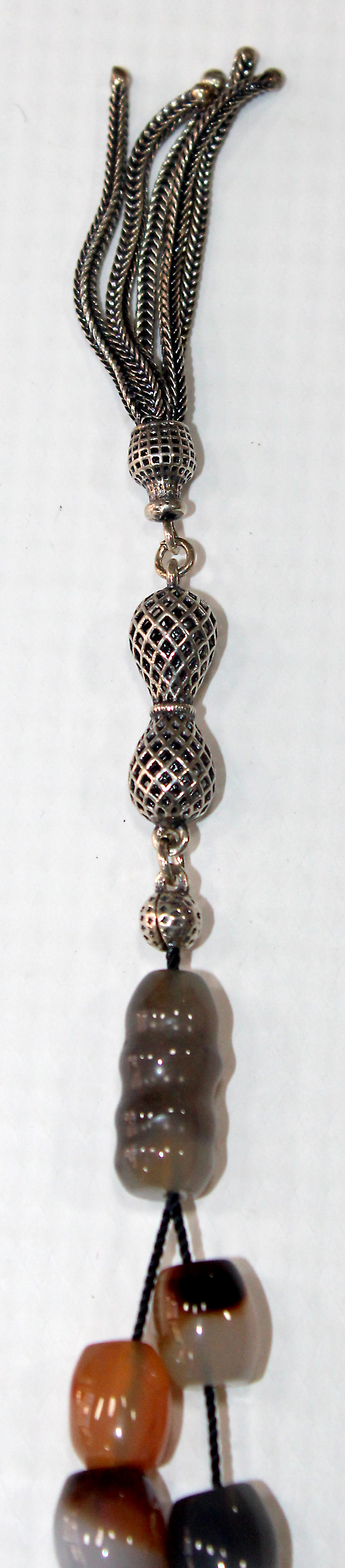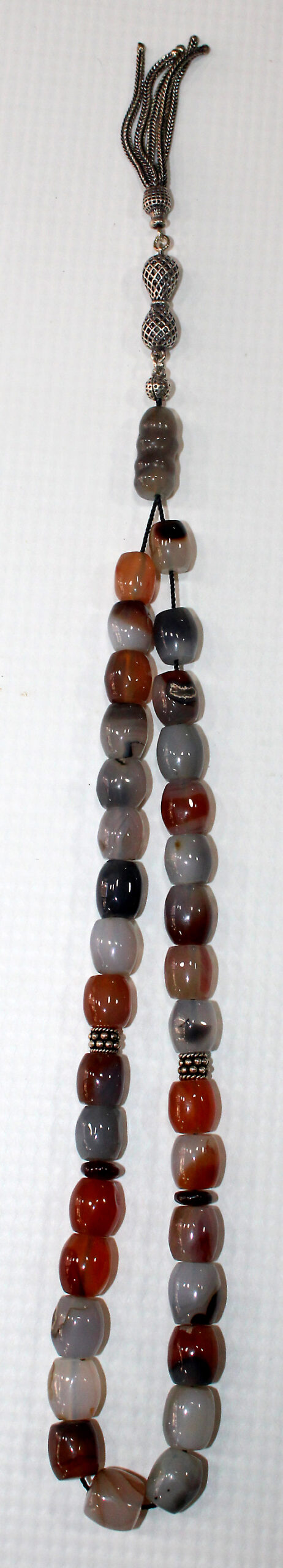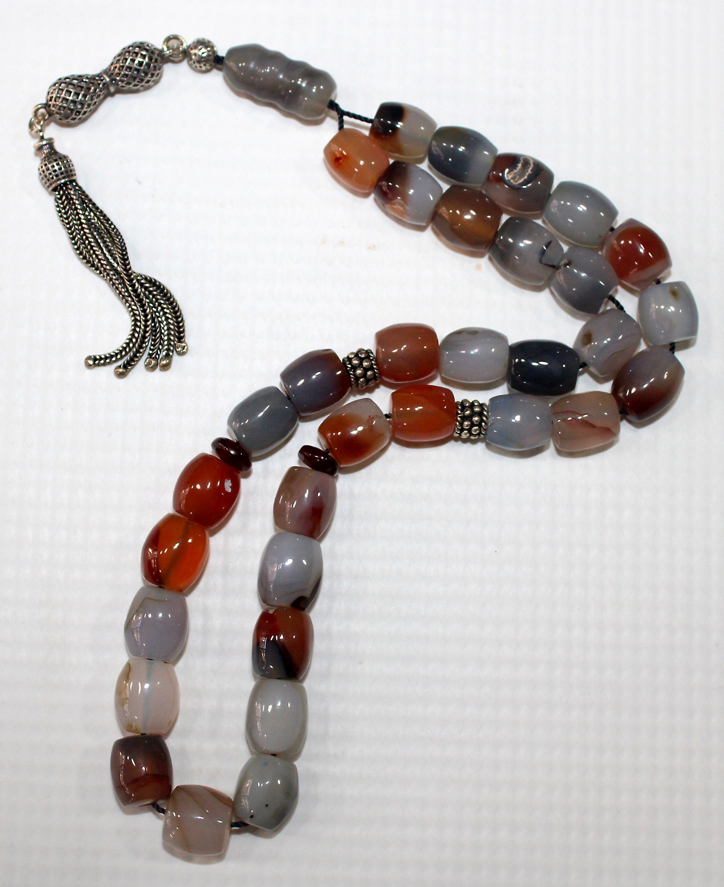 مسبحة حجرها 33 حبة عقيق يماني مزهر والشرابة والشواهد فضة خالص بتصميم انيق ومميز