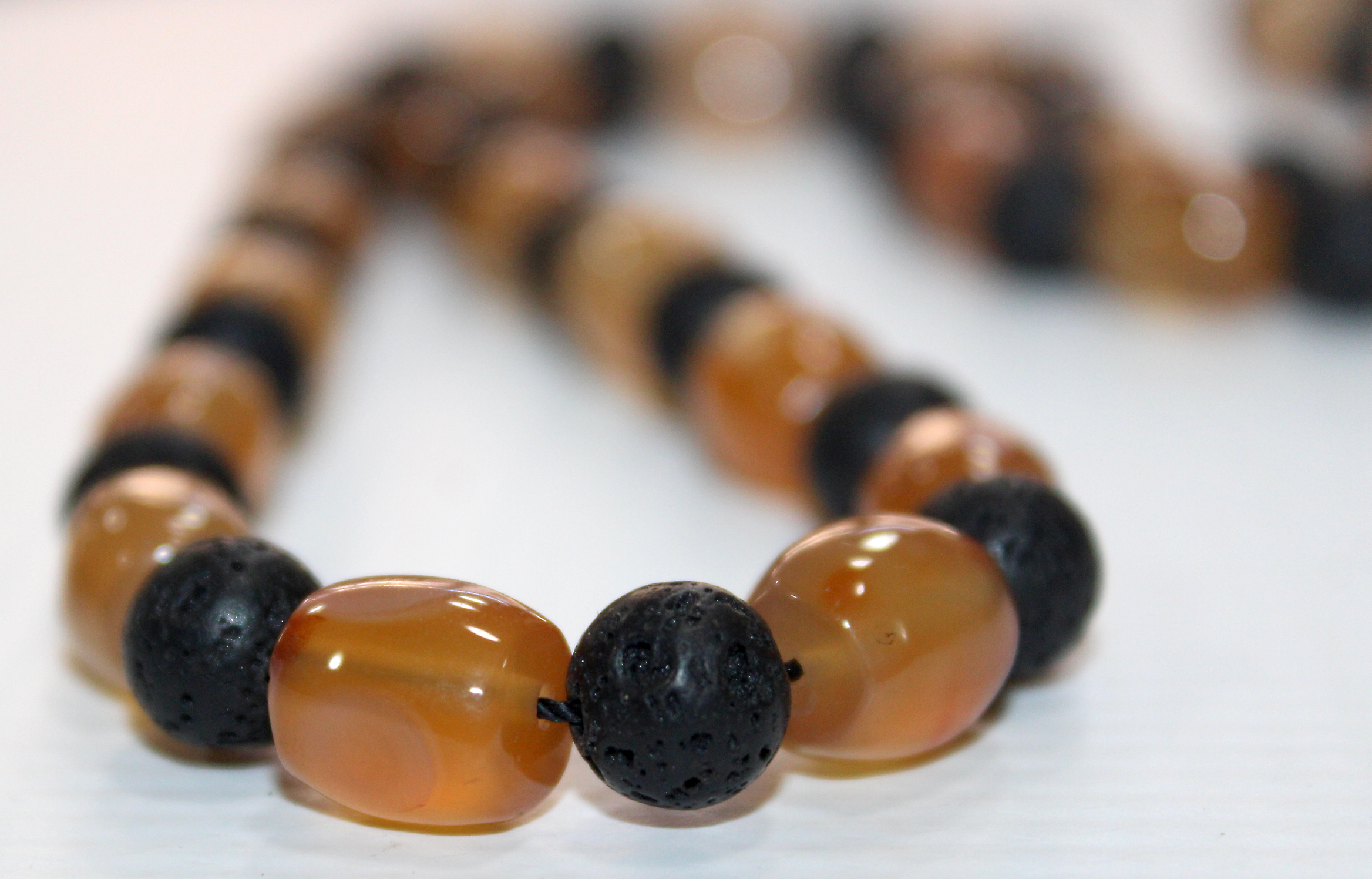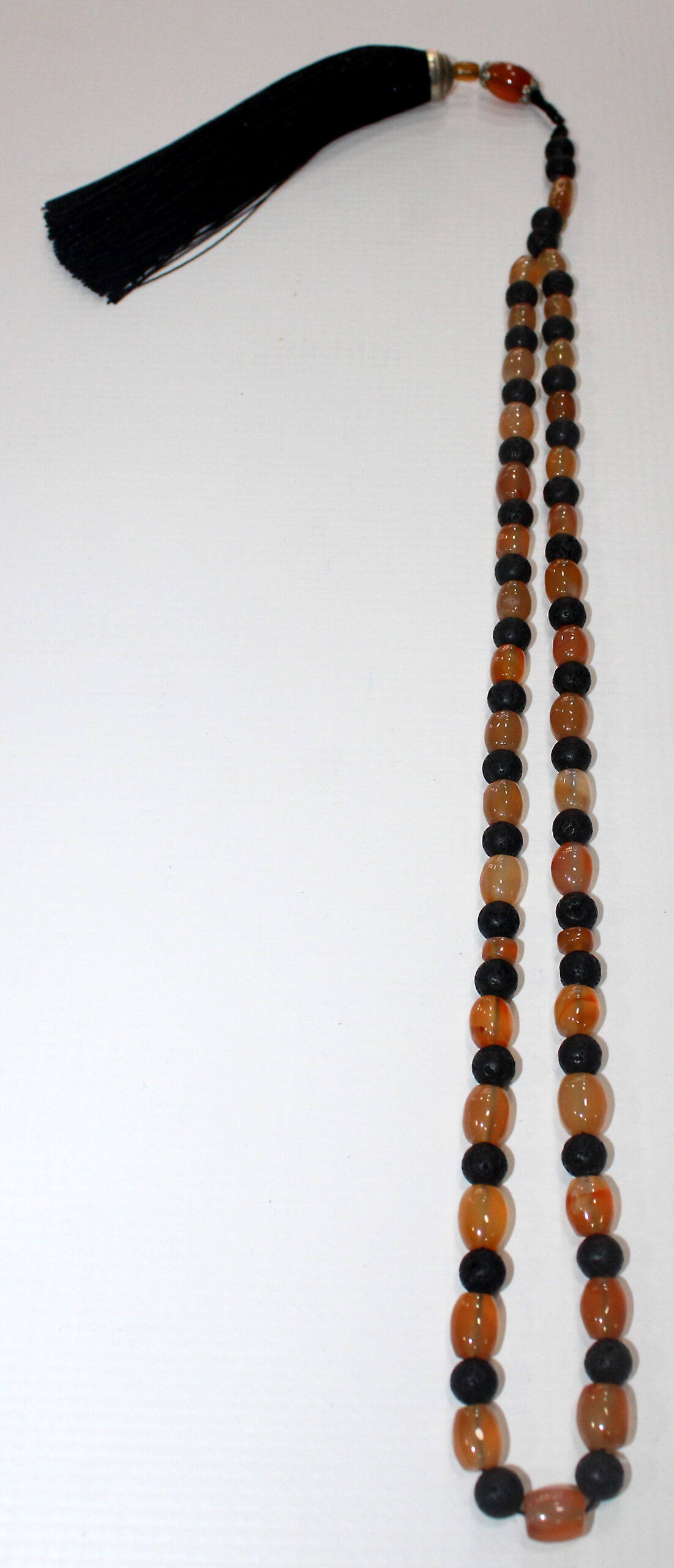 مسبحة 66 حبة حجرها 33 حبة عقيق يماني و33 حبة لافا والشرابة حرير بتصميم انيق ومميز