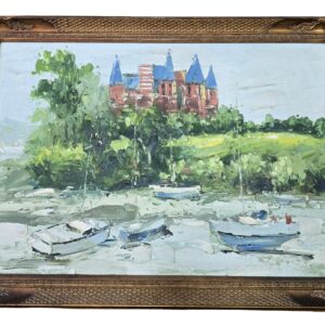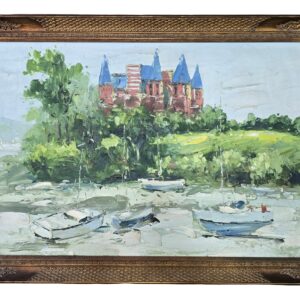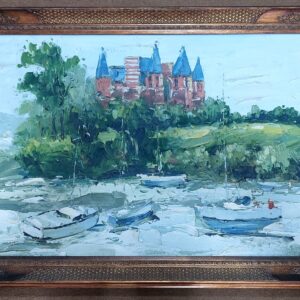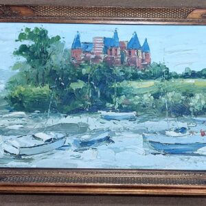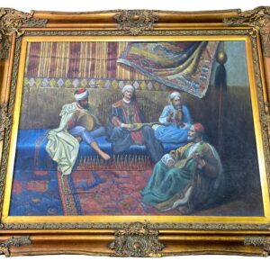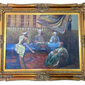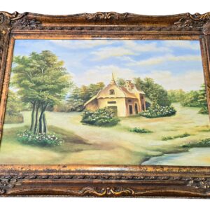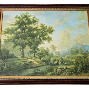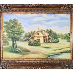 لوحة أوروبية رسم زيتي على قماش مع برواز خشب حفر عريض
