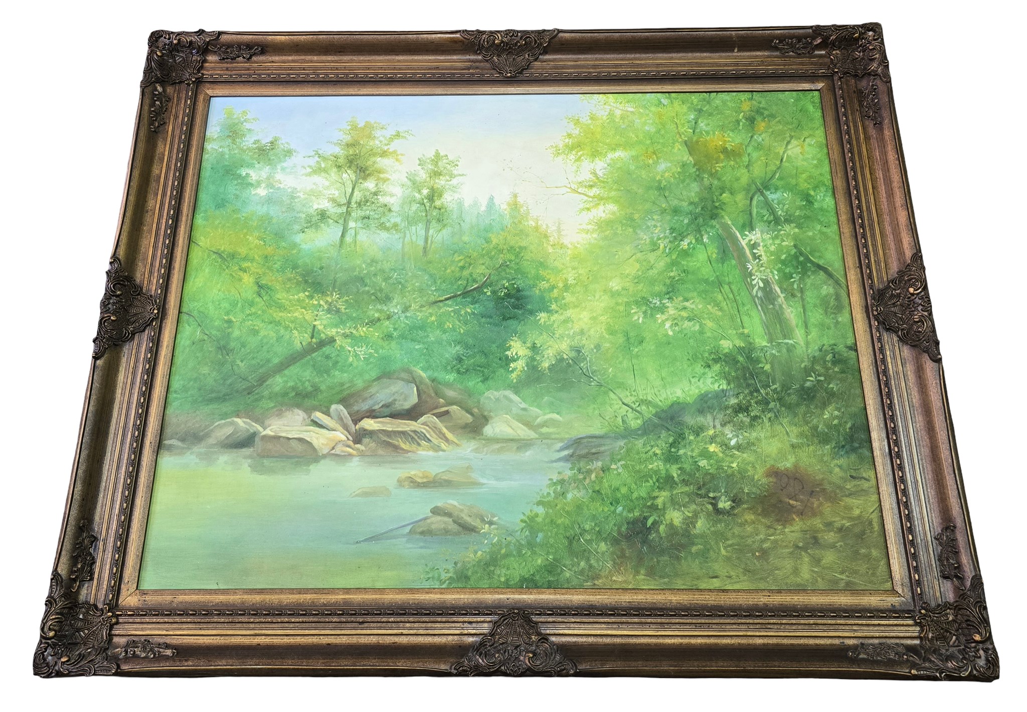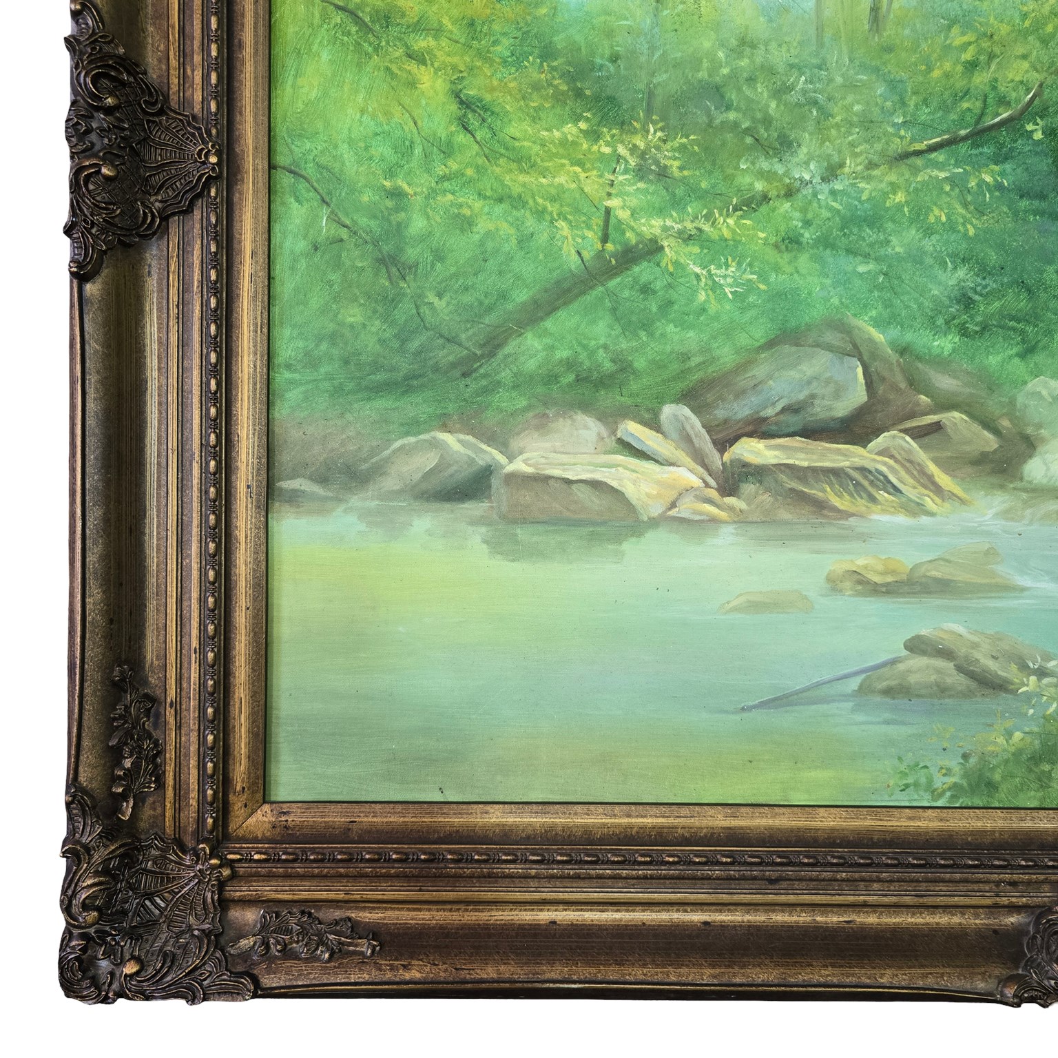 لوحة طبيعة رسم زيتي على قماش مع برواز خشب حفر عريض