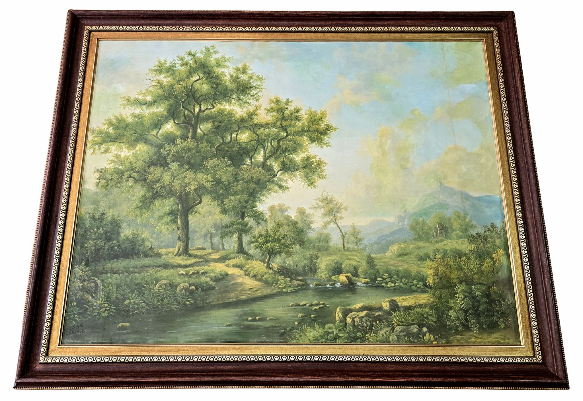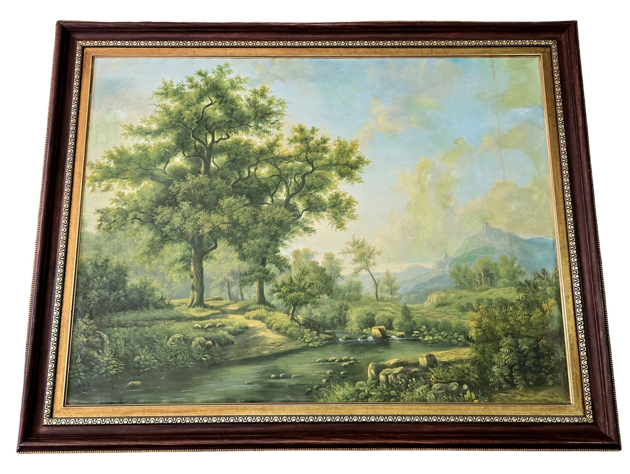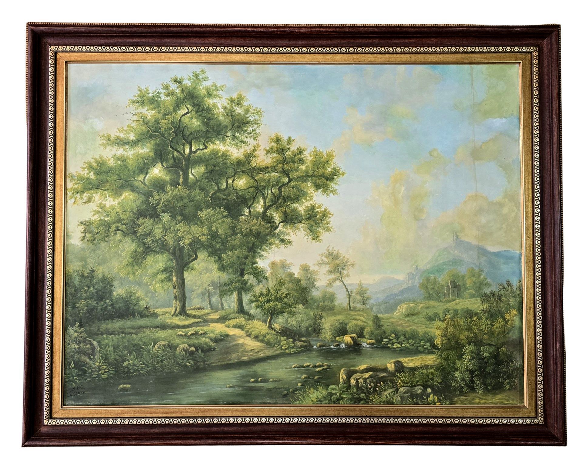 لوحة طبيعة رسم زيتي على قماش مع برواز فيبر