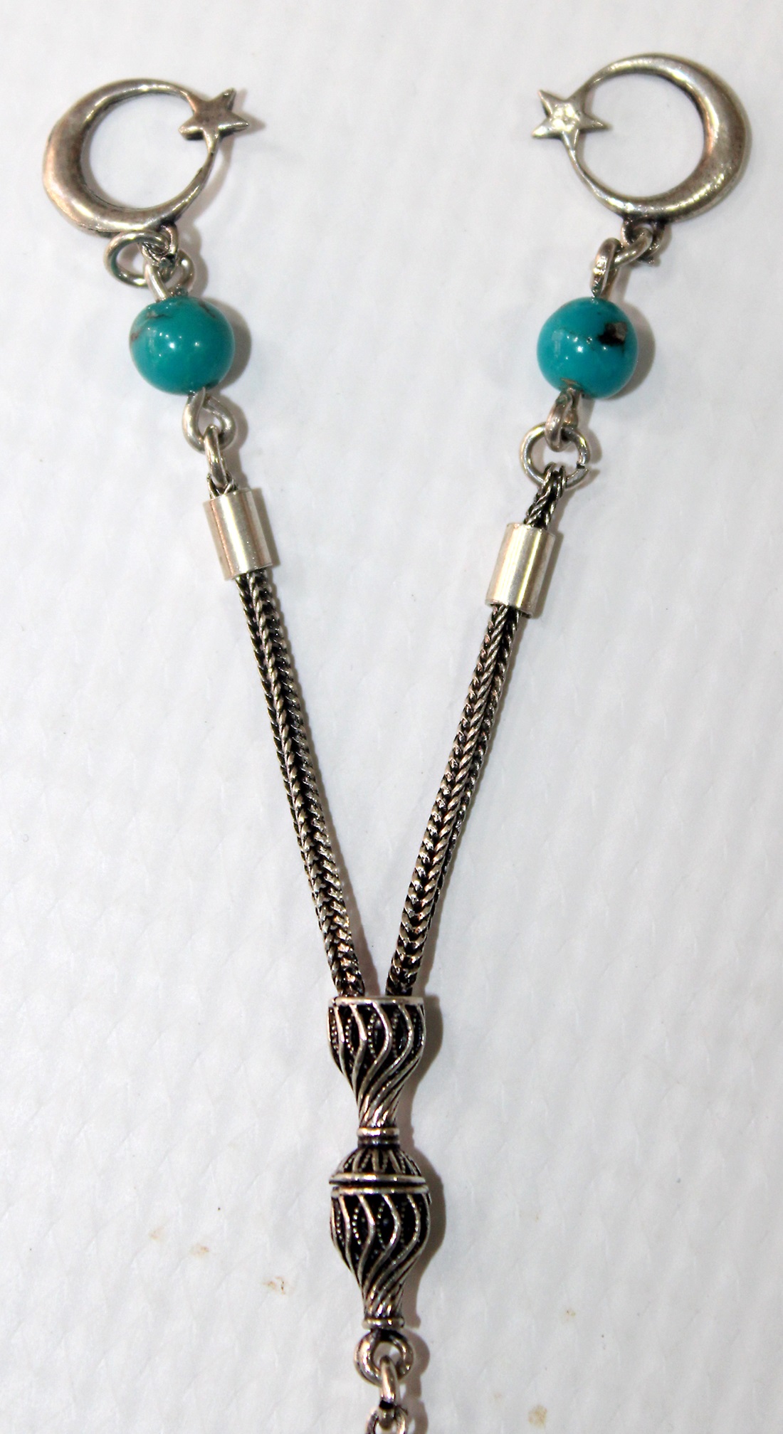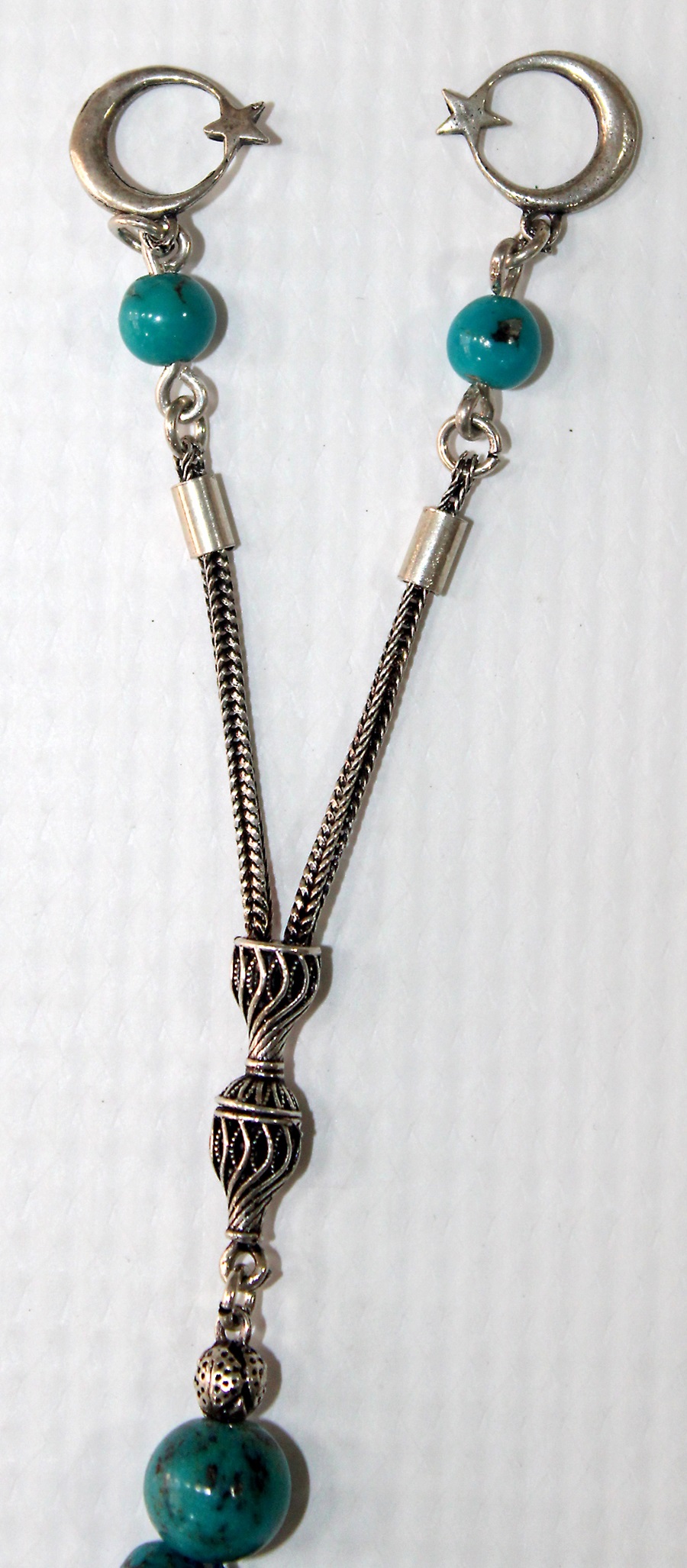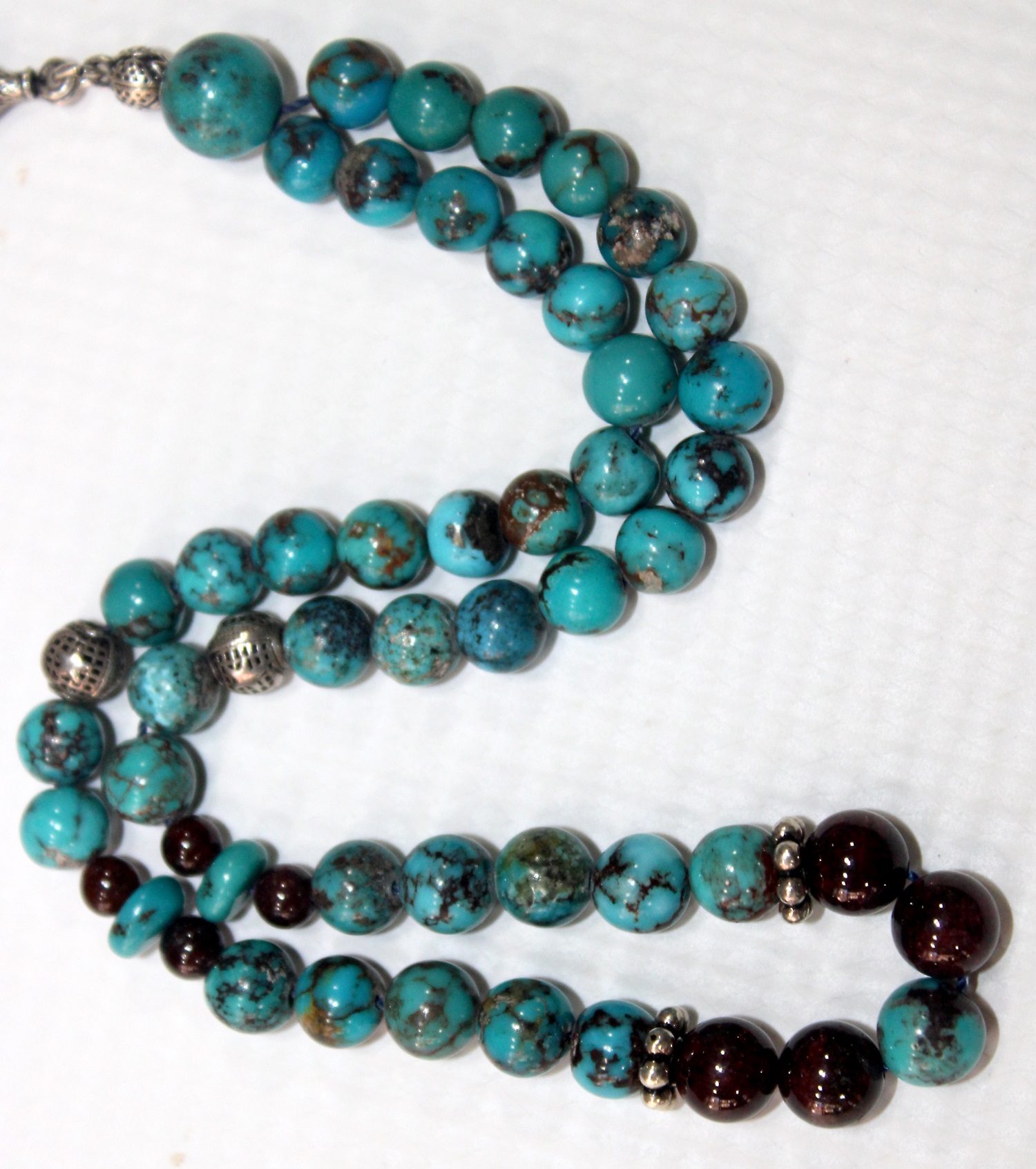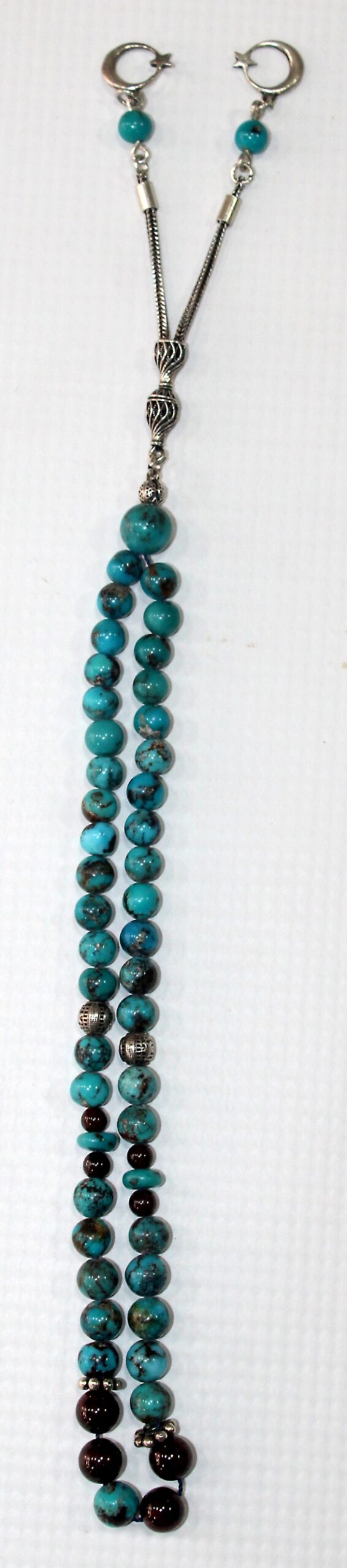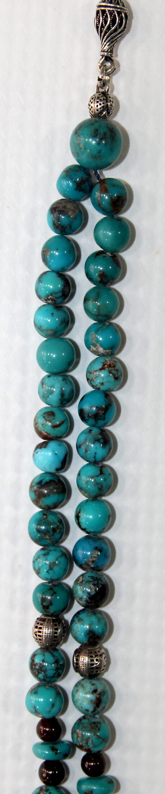 مسبحة 45 حبة حجرها فيروز نيشابوري والشرابة فضة خالص بتصميم انيق ومميز