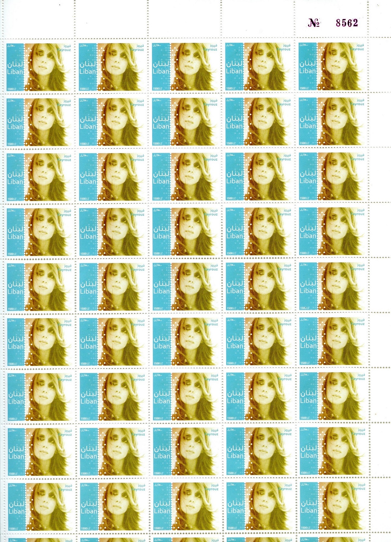 ورقة أصلية كاملة تضم 50 طابع تحمل صورة السيدة فيروز،