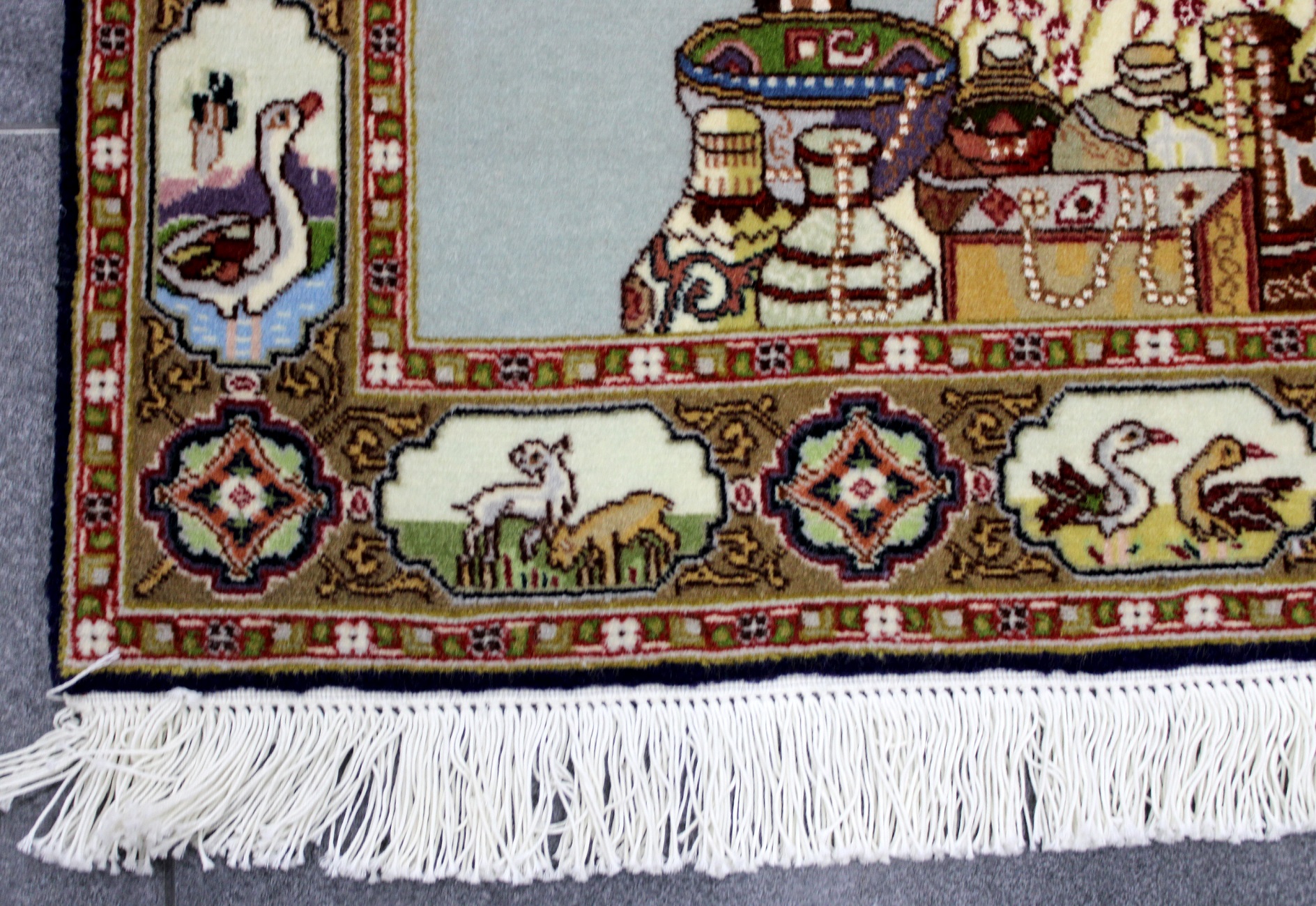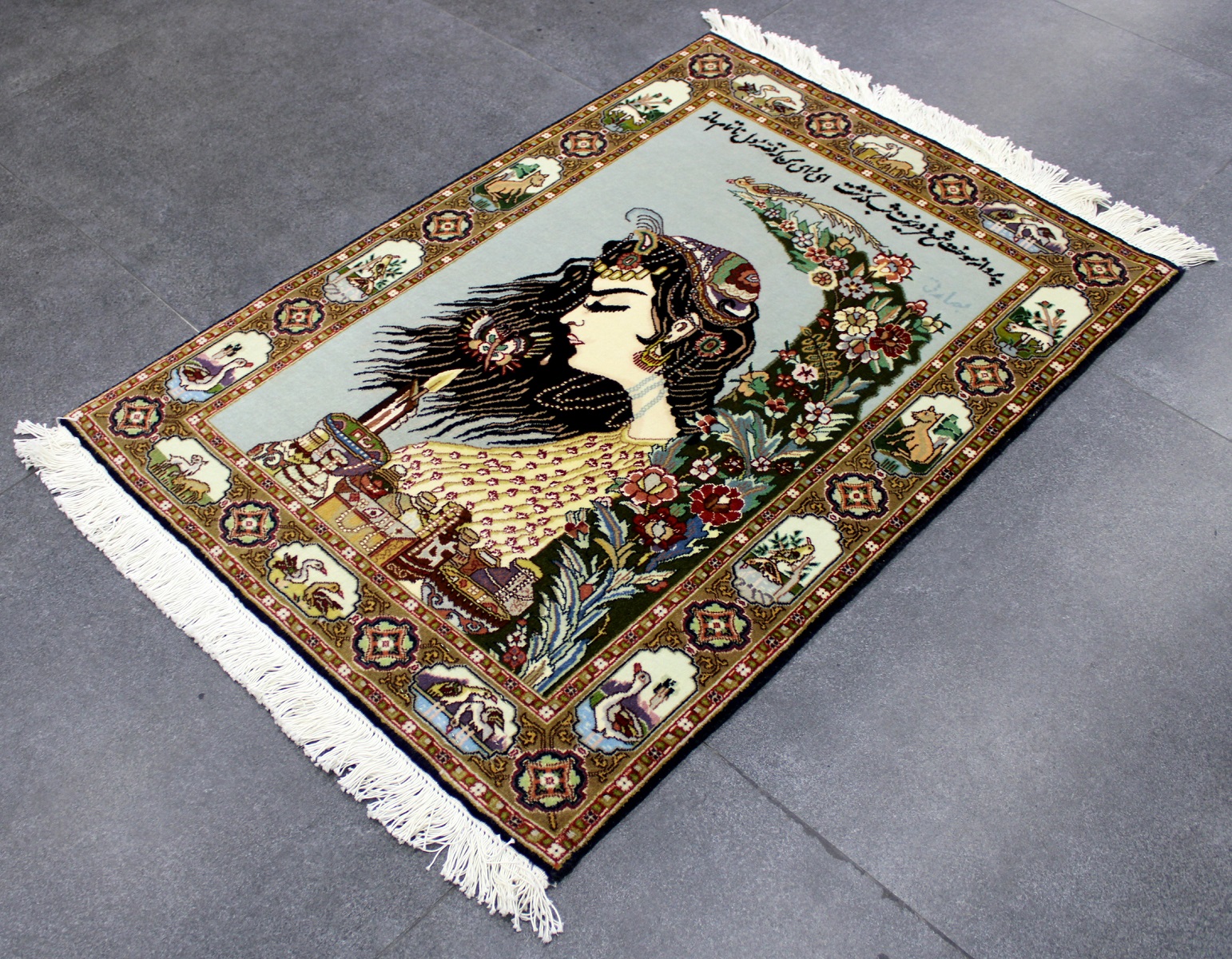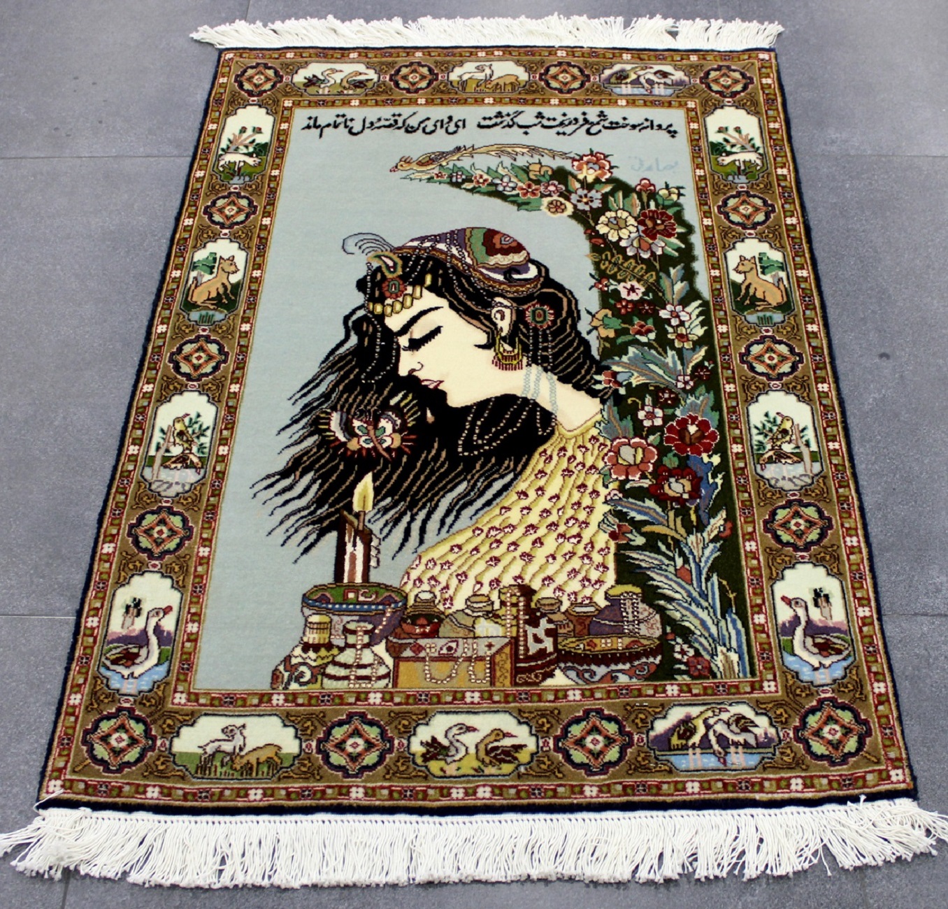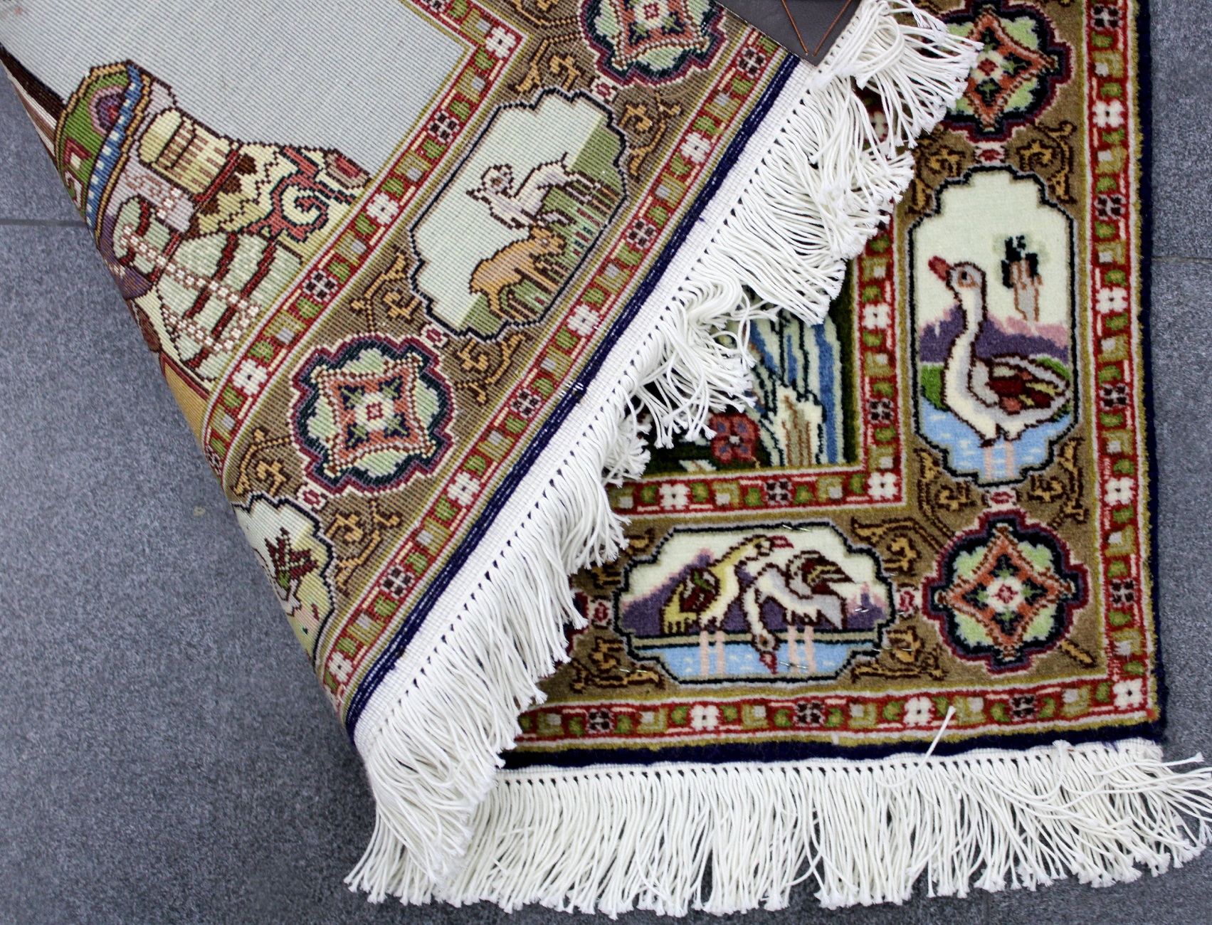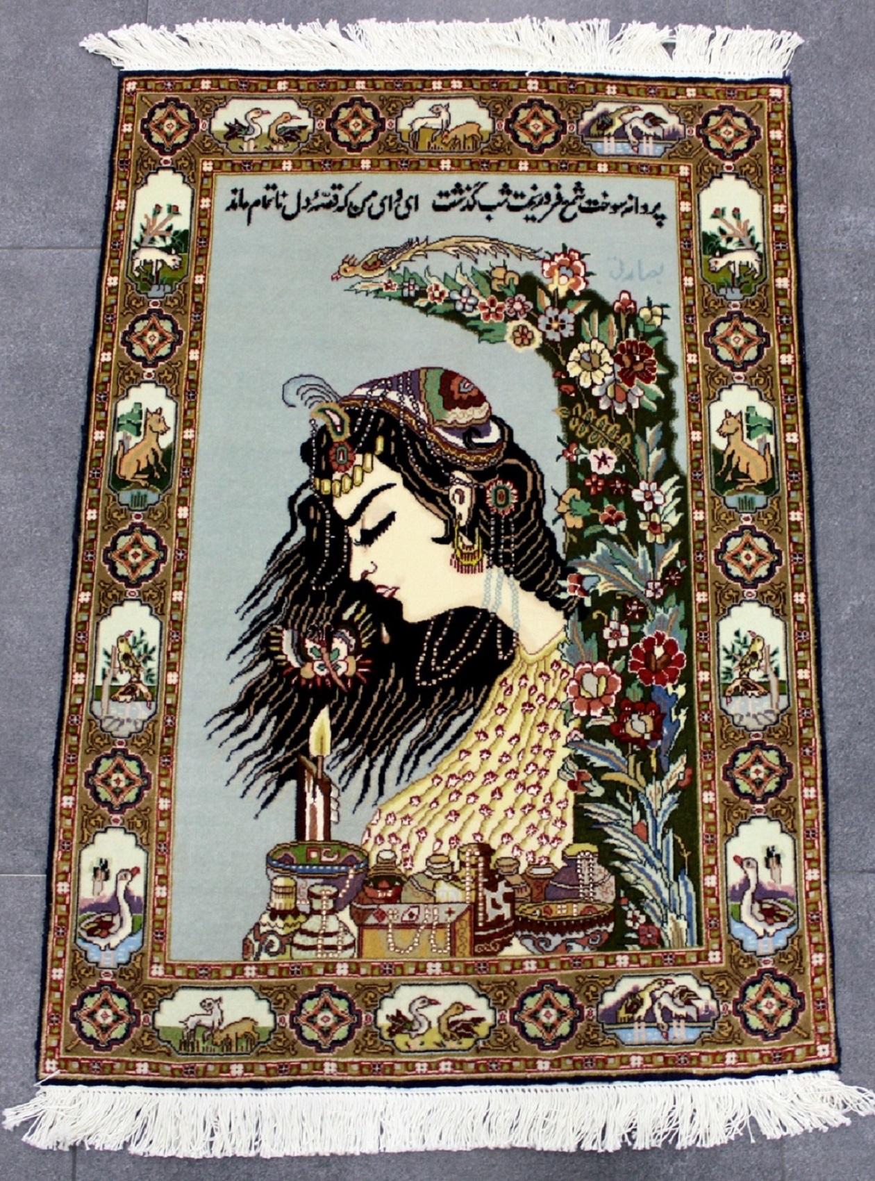 سجادة تبريز جوهر عمرها فوق 5 سنين صوف كُرك مع حرير فيها 50 قطبة بالـ7سم شغل يدوي ايراني العجمي