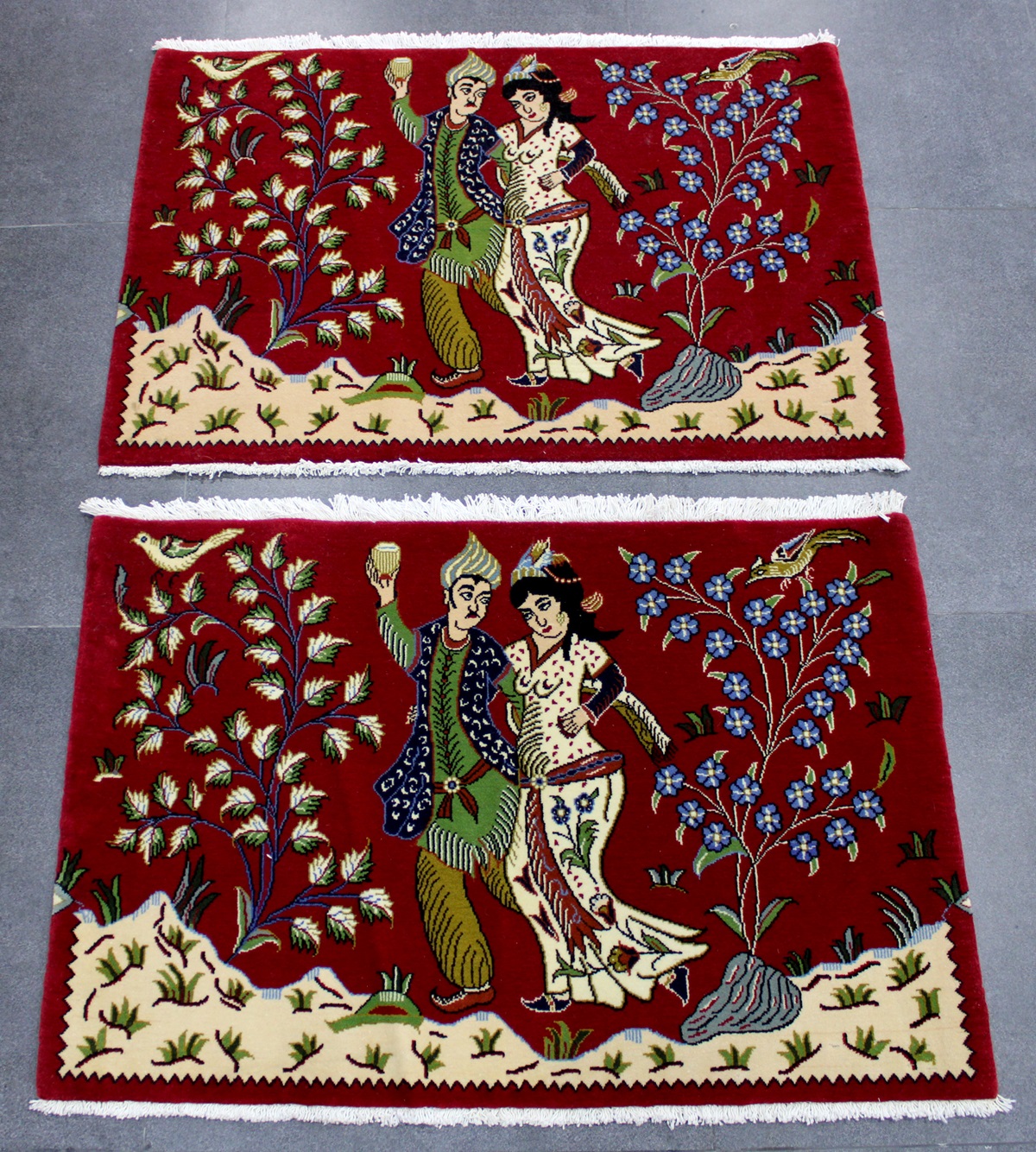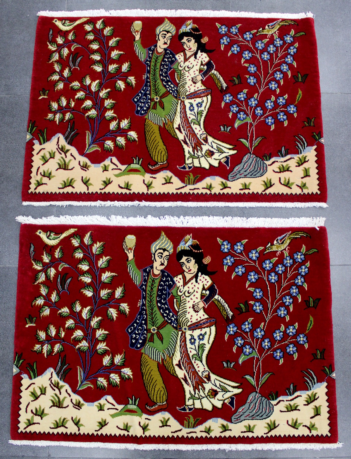 سجادتين توأم قُم تابلو صوف كُرك شغل يدوي ايراني العجمي