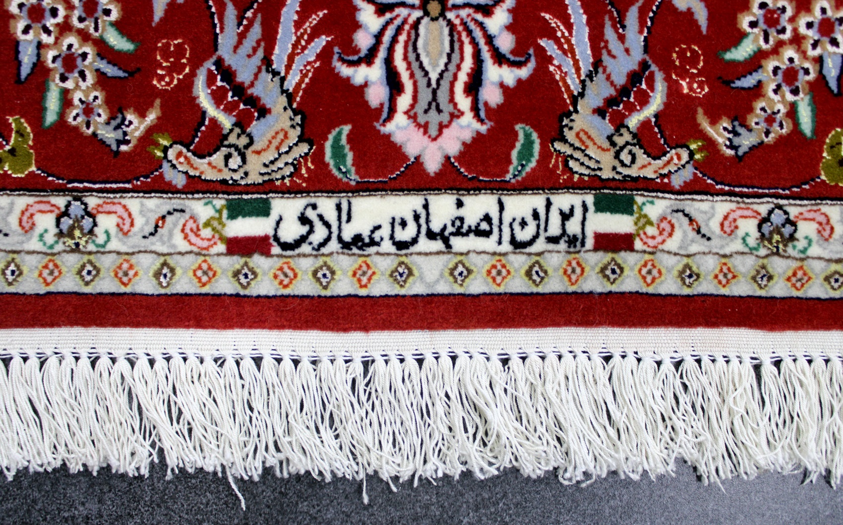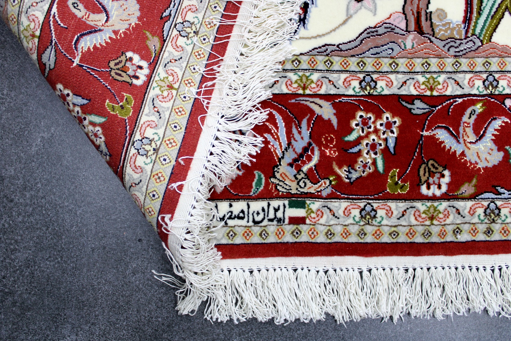 سجادة أصفهان ممضية (عمادي) نقشة شجرة الحياة صوف كُرك وحرير وفيها لونين حرير فيها 60 قطبة بالـ7سم شغل يدوي ايراني العجمي