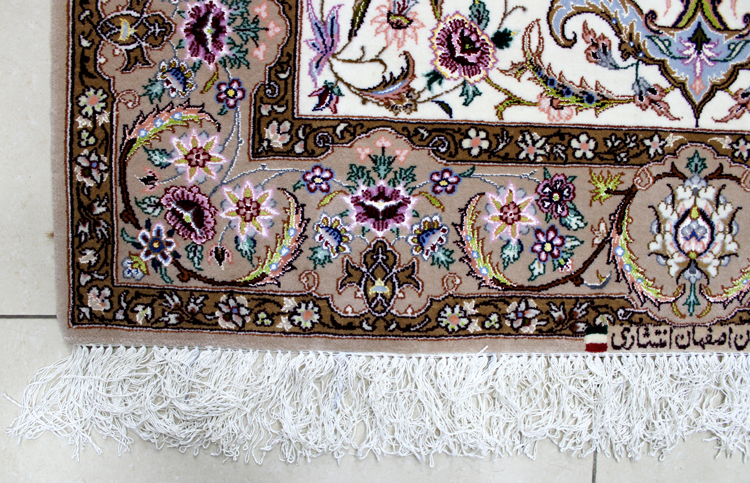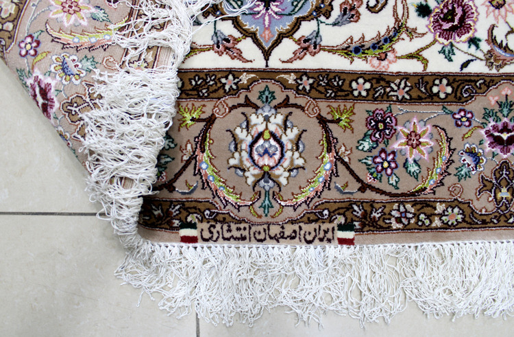 سجادة اصفهان ممضية انتشاري صوف كُرك وحرير وفيها 60 قطبة بالـ7سم شغل يدوي ايراني العجمي