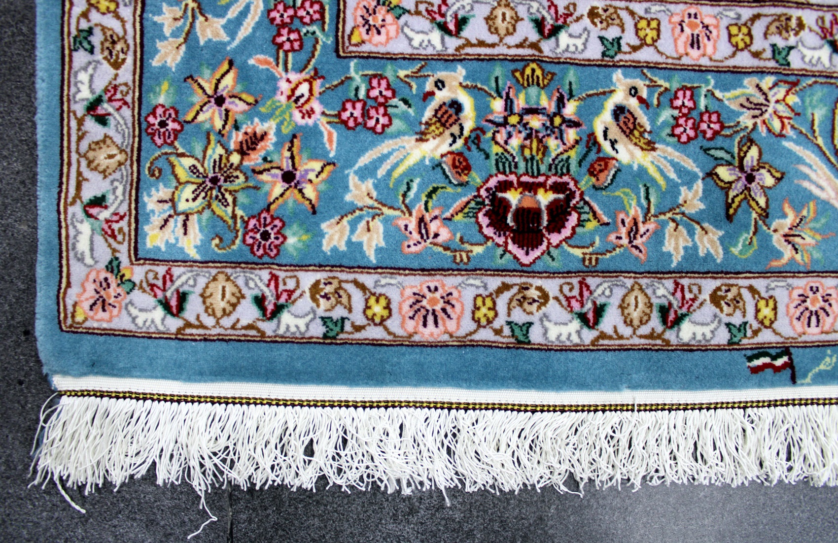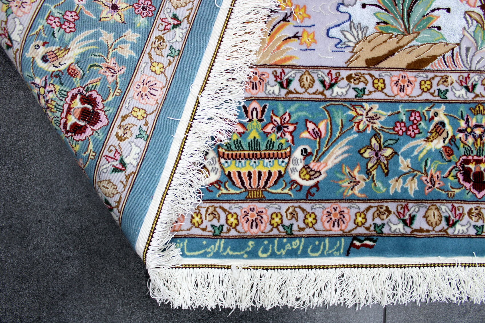 سجادة أصفهان ممضية (عبد الرضى نصر) نقشة شجرة الحياة صوف كُرك وكف حرير (80% من السجادة حرير) فيها 60 قطبة بالـ7سم شغل يدوي ايراني العجمي