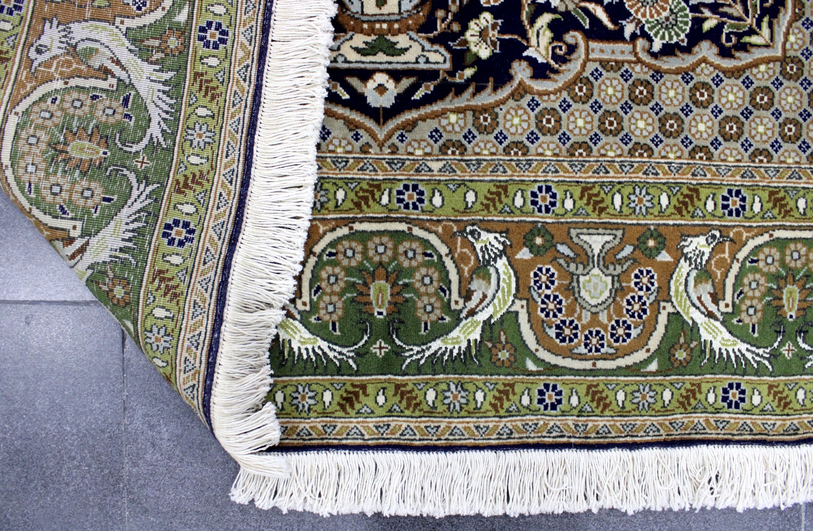 سجادة قُم شهرزاد عمرها فوق 15 سنة صوف كُرك ولونين حرير شغل يدوي ايراني العجمي