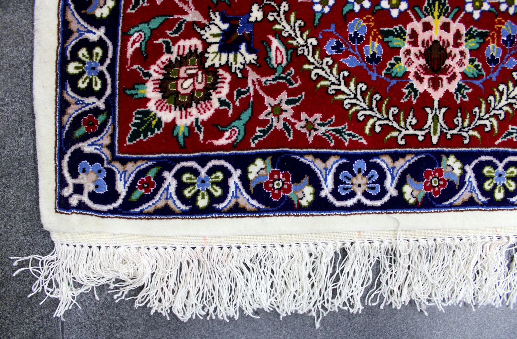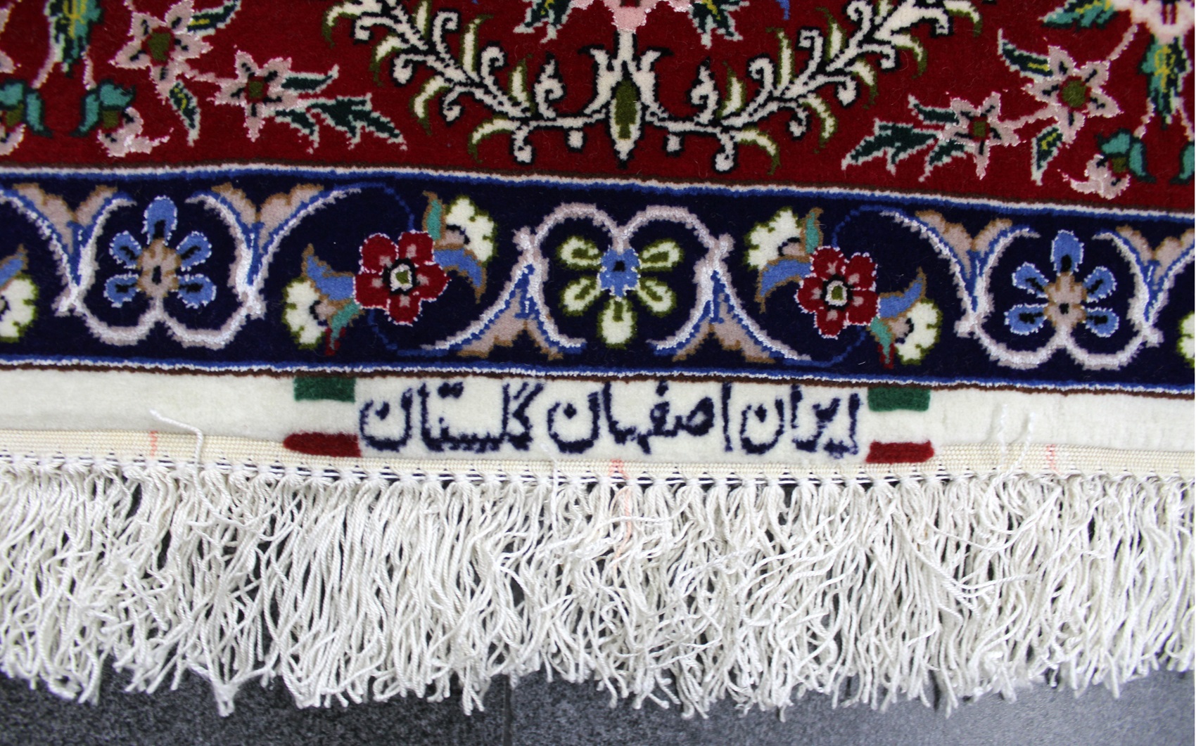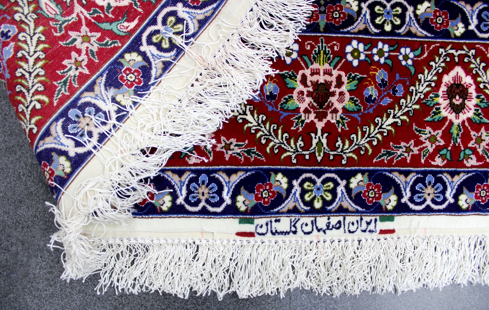 سجادة أصفهان تكخفت ممضية (كلستان) صوف كُرك وحرير فيها 60 قطبة بالـ7سم شغل يدوي ايراني العجمي