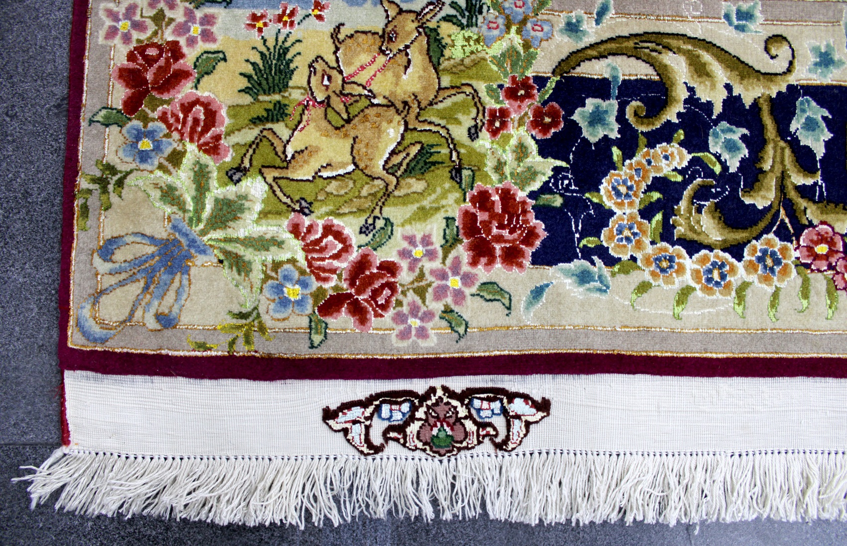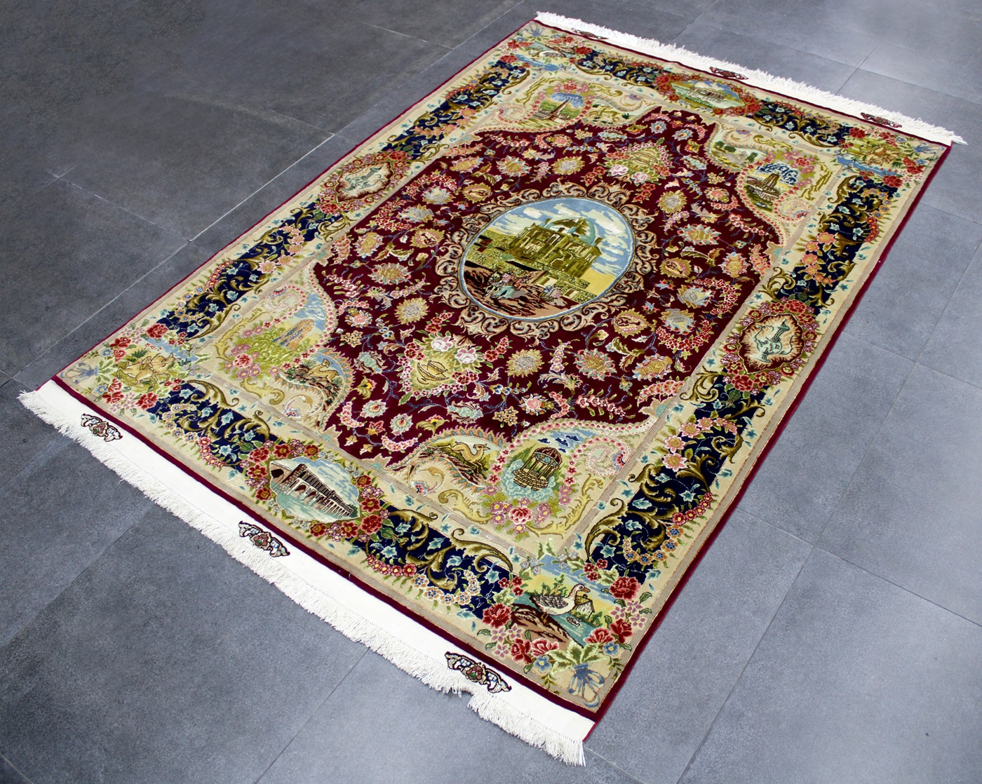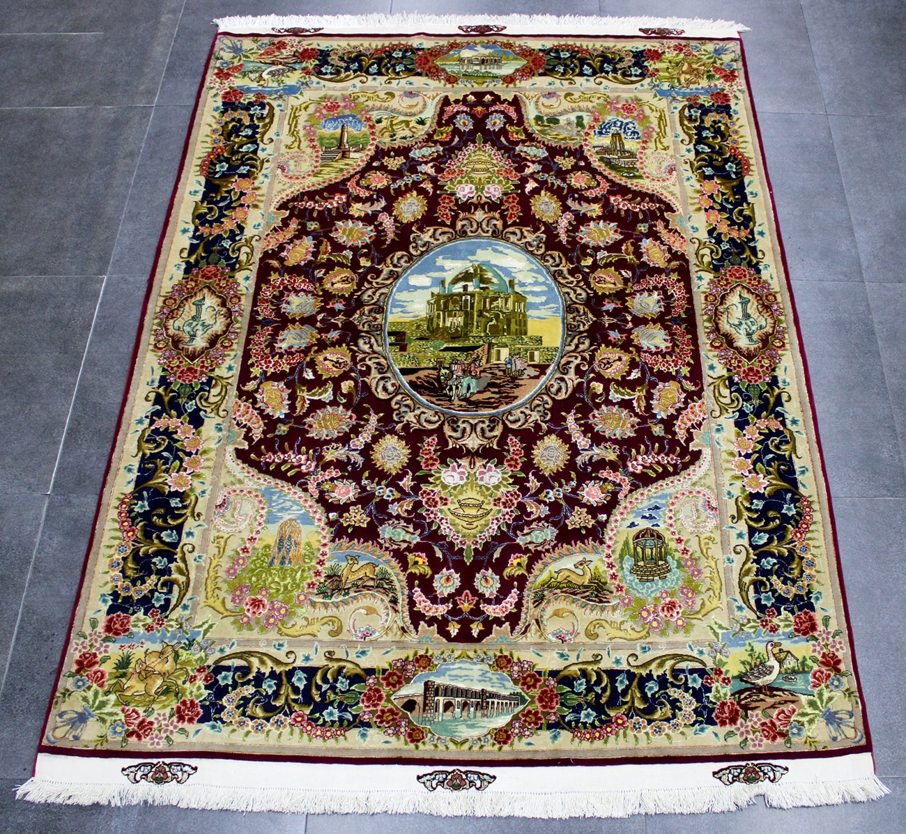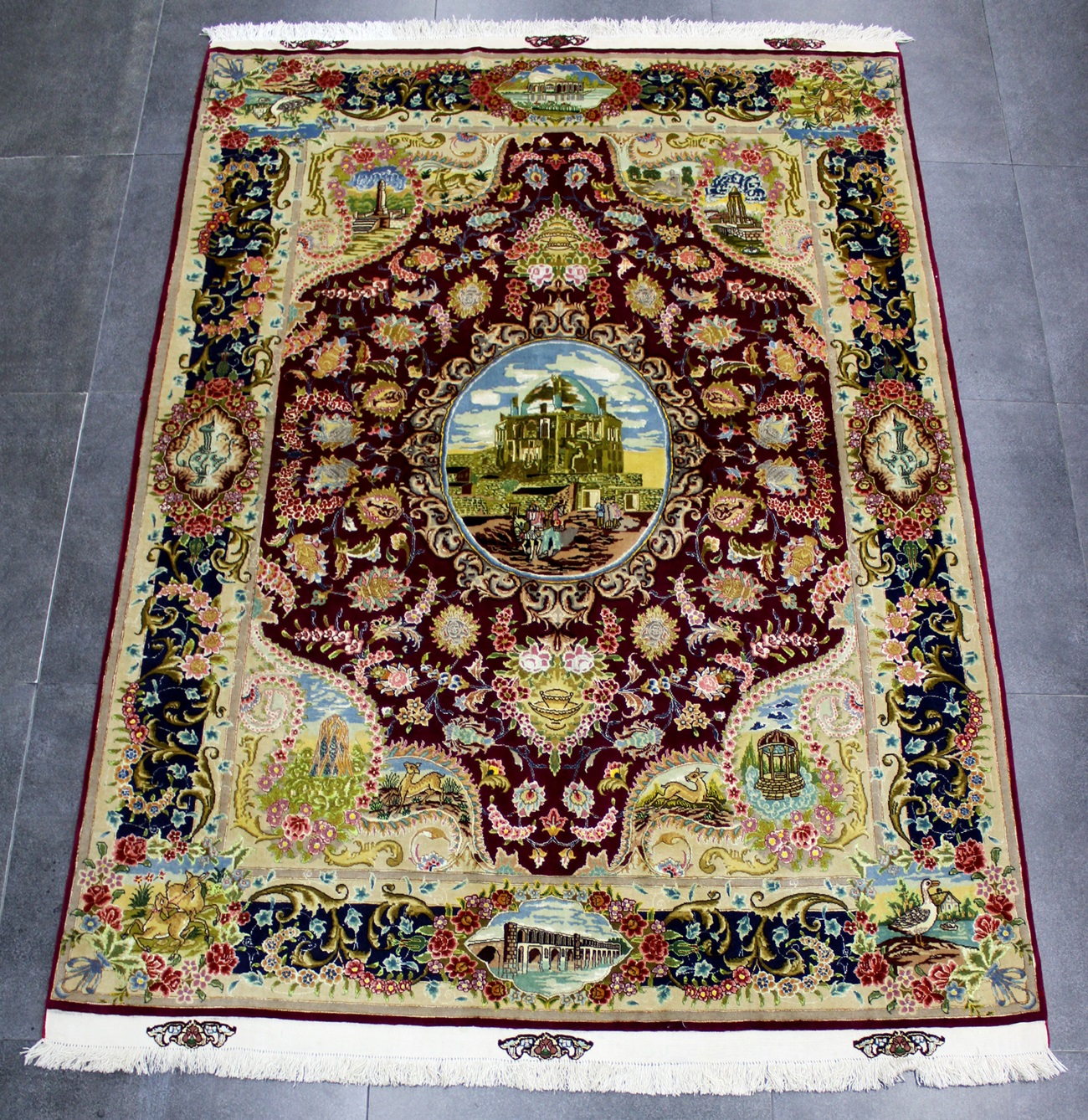سجادة تبريز جوهر عمرها فوق 10 سنين صوف كُرك ومد حرير وفيها 4 ألوان حرير وفيها 60 قطبة بالـ7سم شغل يدوي ايراني العجمي
