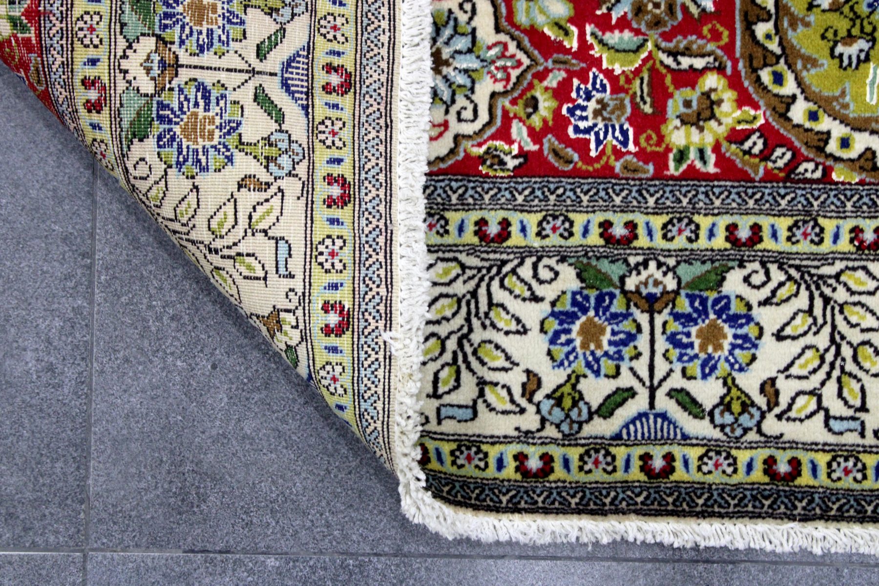 سجادة قُم شهرزاد عمرها فوق 15 سنة صوف كُرك وحرير شغل يدوي ايراني العجمي