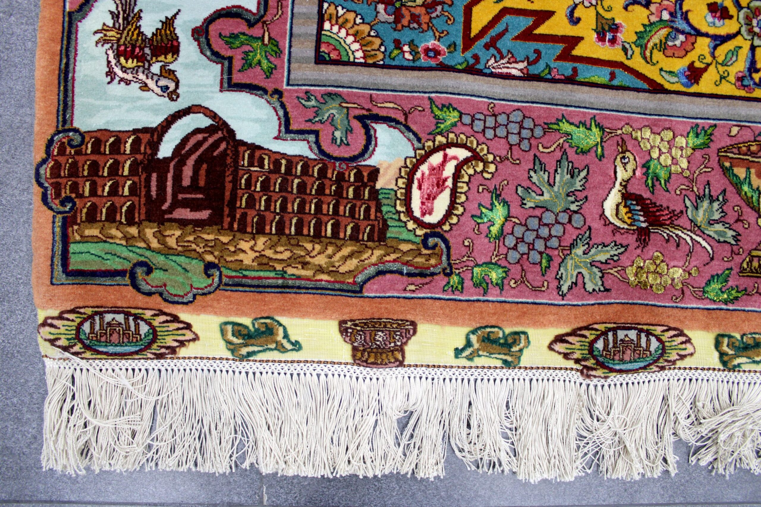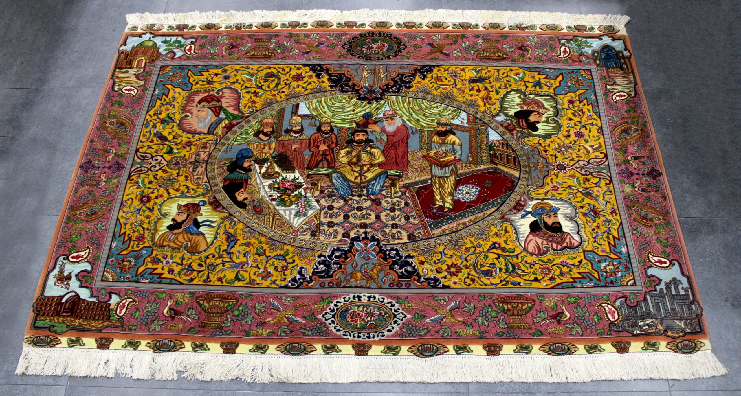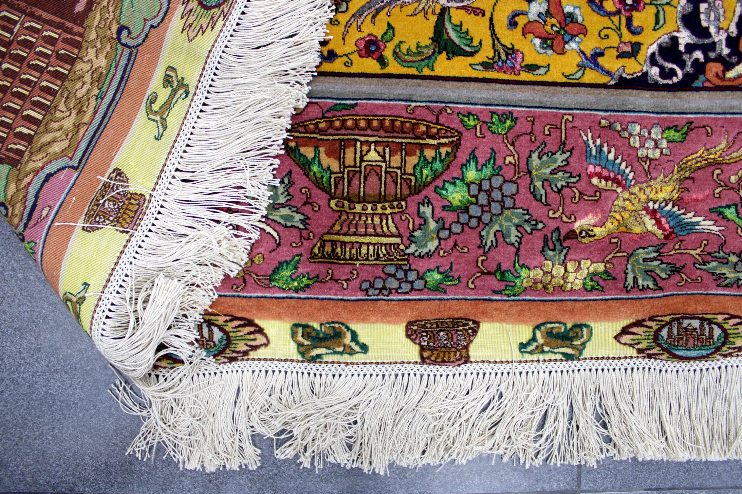 سجادة تبريز جوهر نقشة السلاطين صوف كُرك و6 ألون حرير فيها 60 قطبة بالـ7سم شغل يدوي ايراني العجمي
