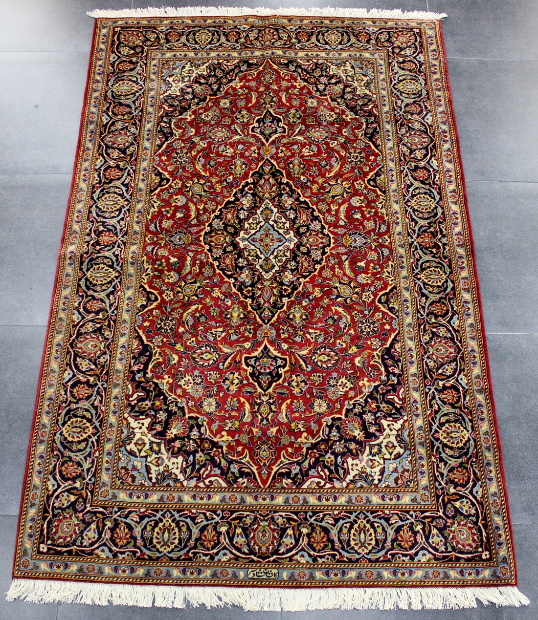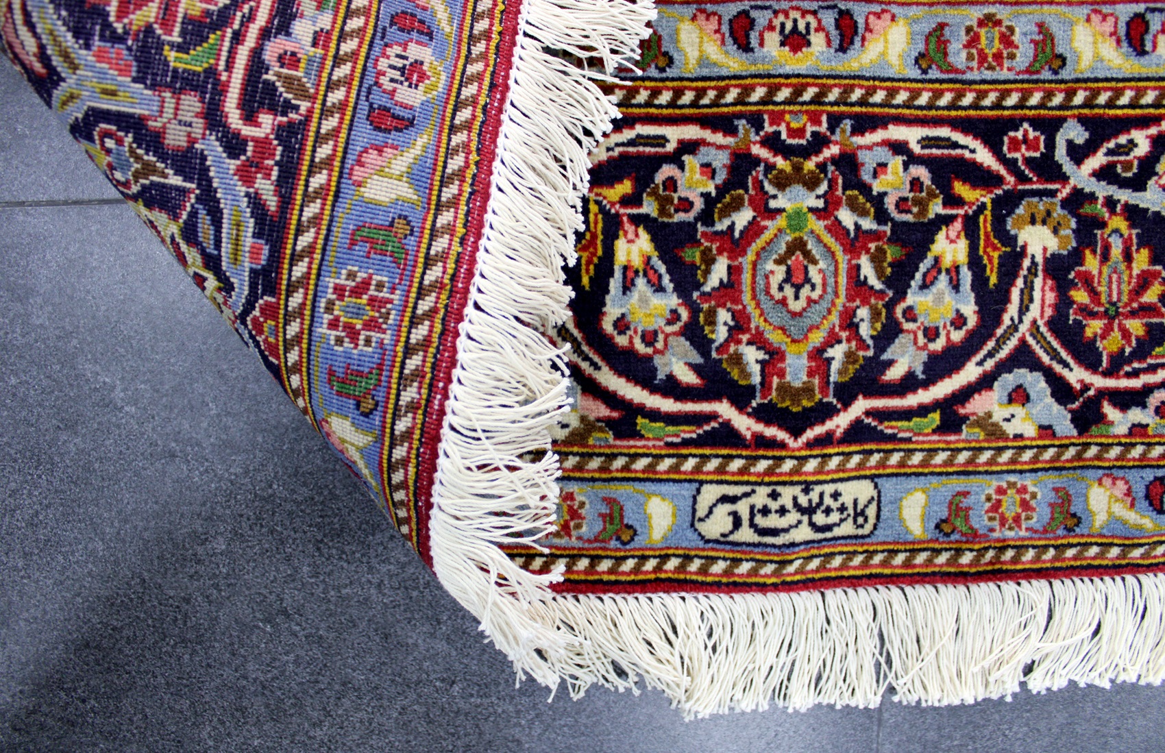 سجادة كاشان ممضية شادسر من الجهتين عمرها فوق 10 سنين صوف كُرك شغل يدوي ايراني العجمي