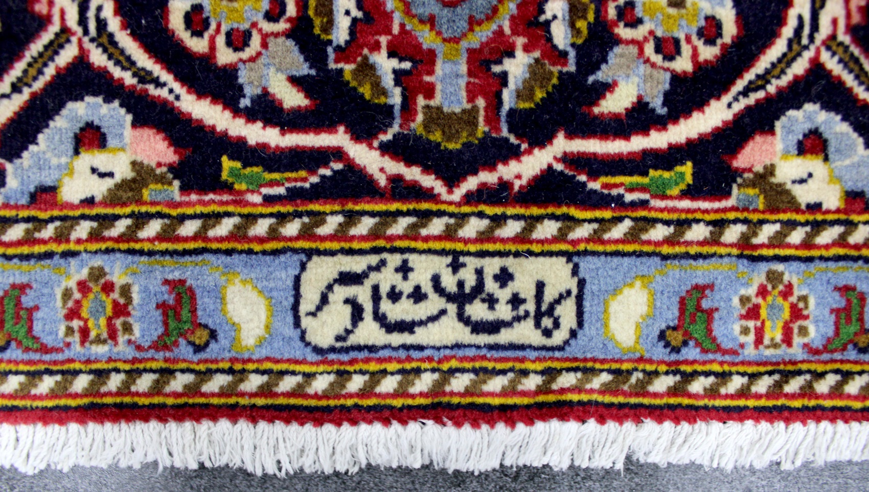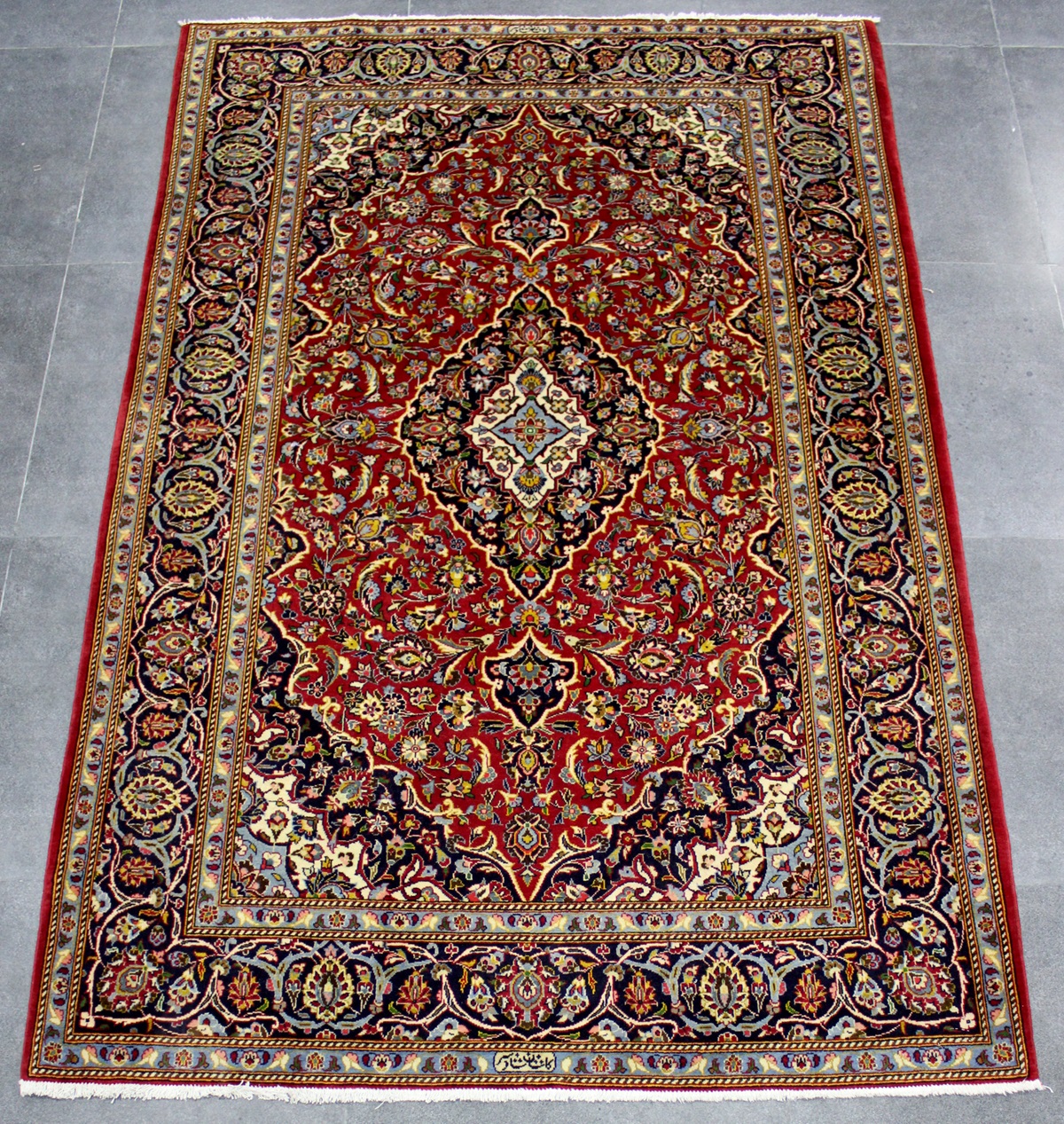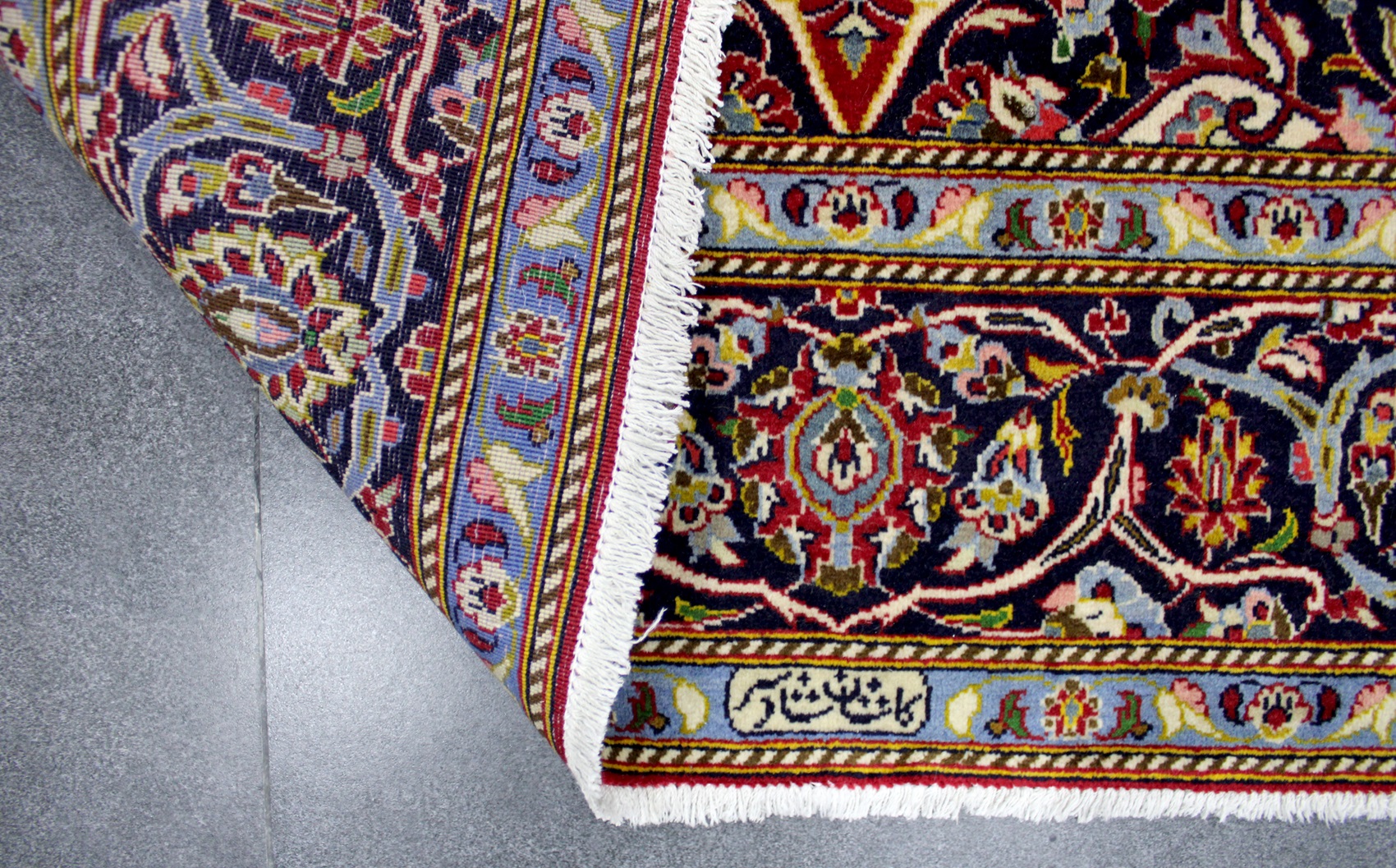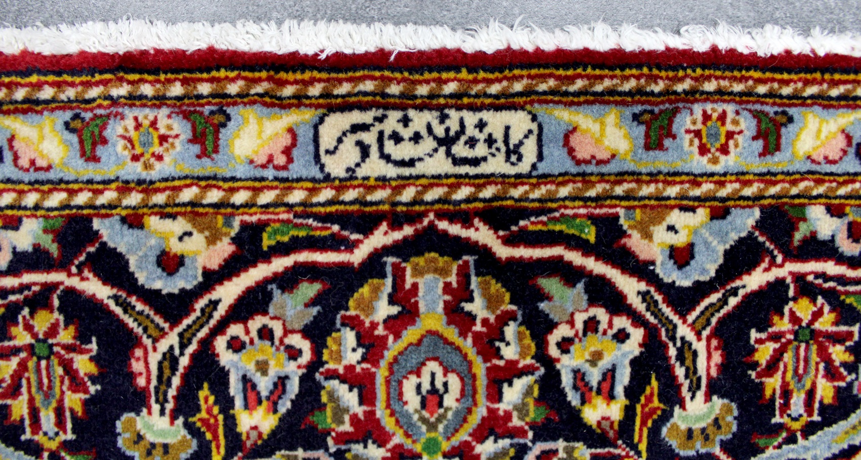 سجادة كاشان ممضية شادسر من الجهتين عمرها فوق 10 سنين صوف كُرك وفيها 40 قطبة بالـ 7سم شغل يدوي ايراني العجمي