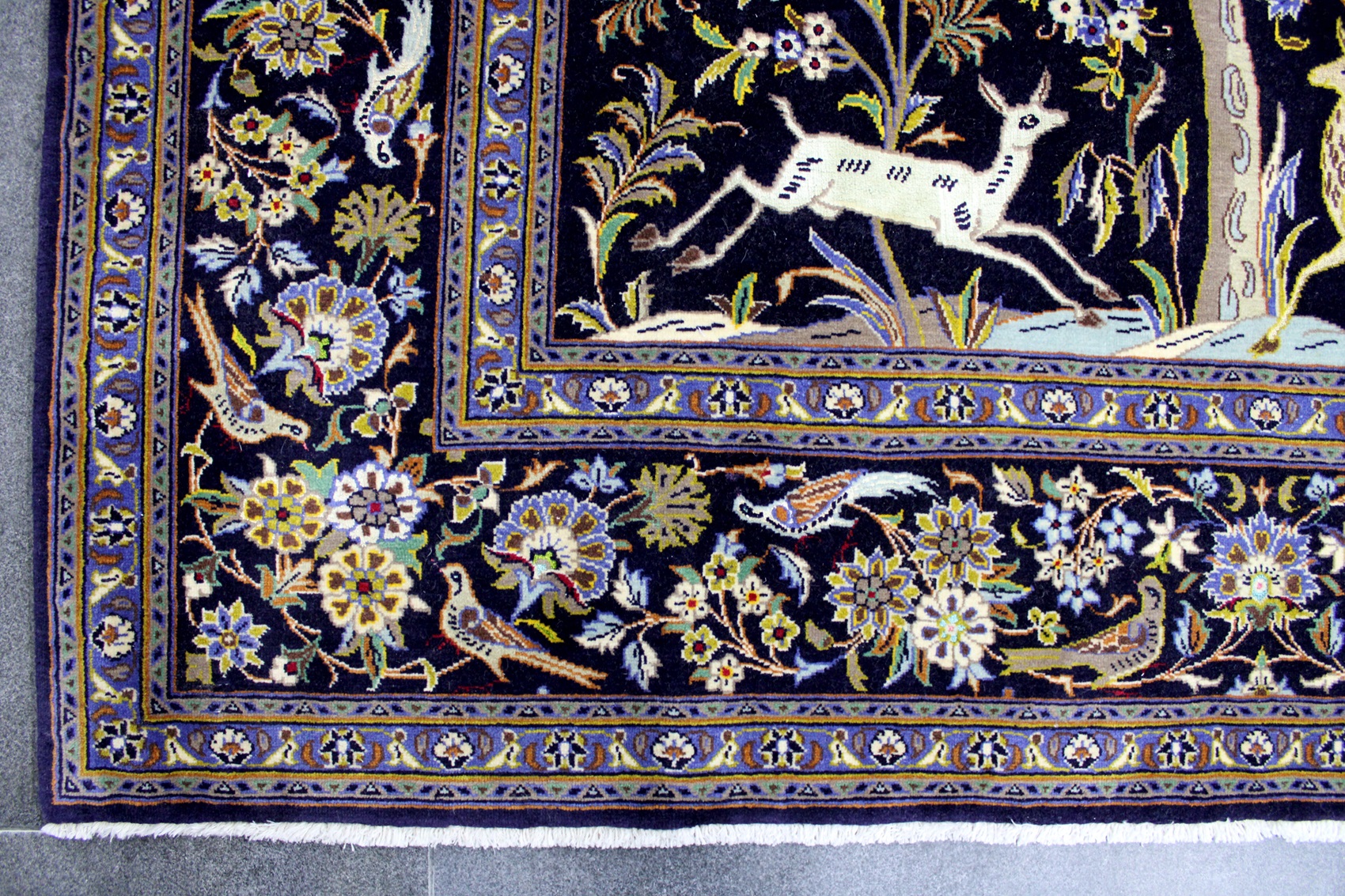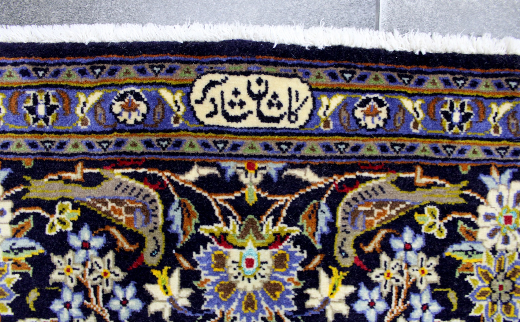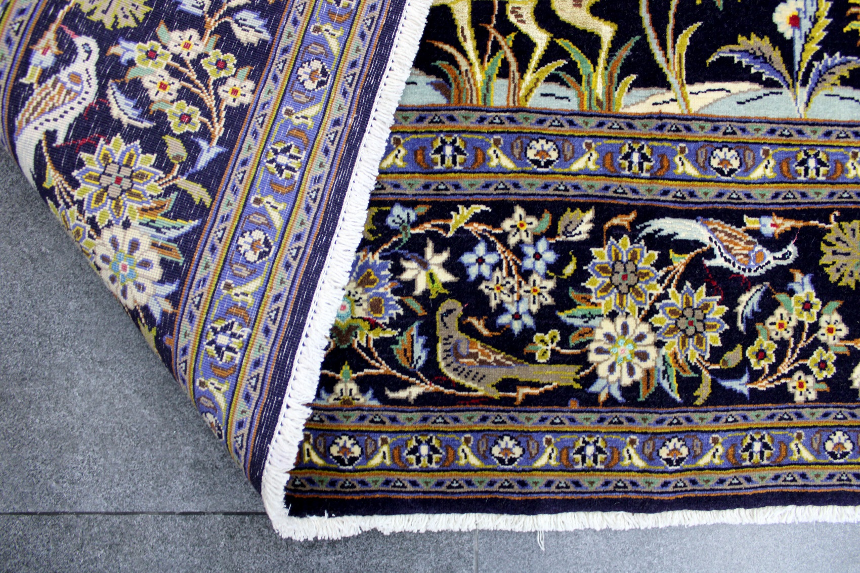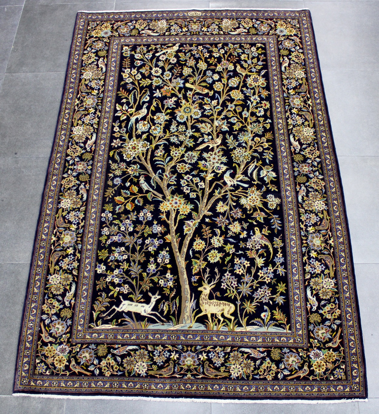 سجادة كاشان ممضية شادسر نقشة شجرة الحياة عمرها فوق 10 سنين صوف كُرك وفيها 3 ألوان حرير شغل يدوي ايراني العجمي