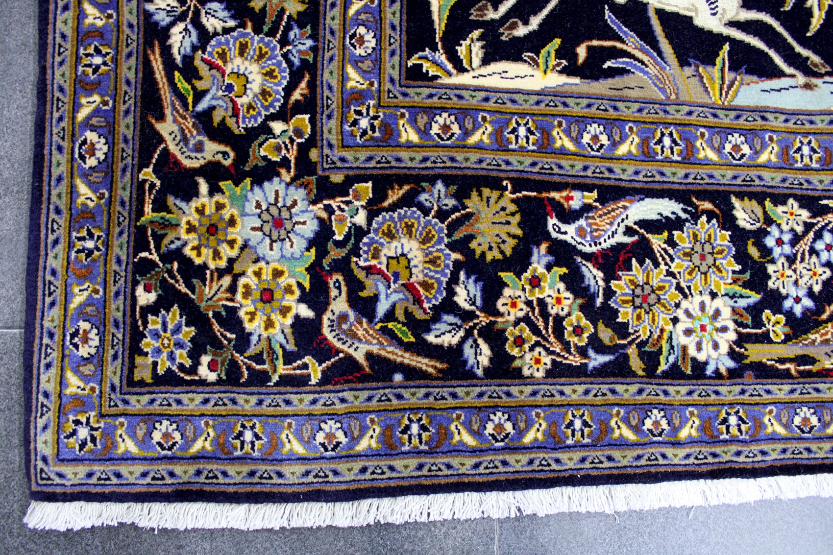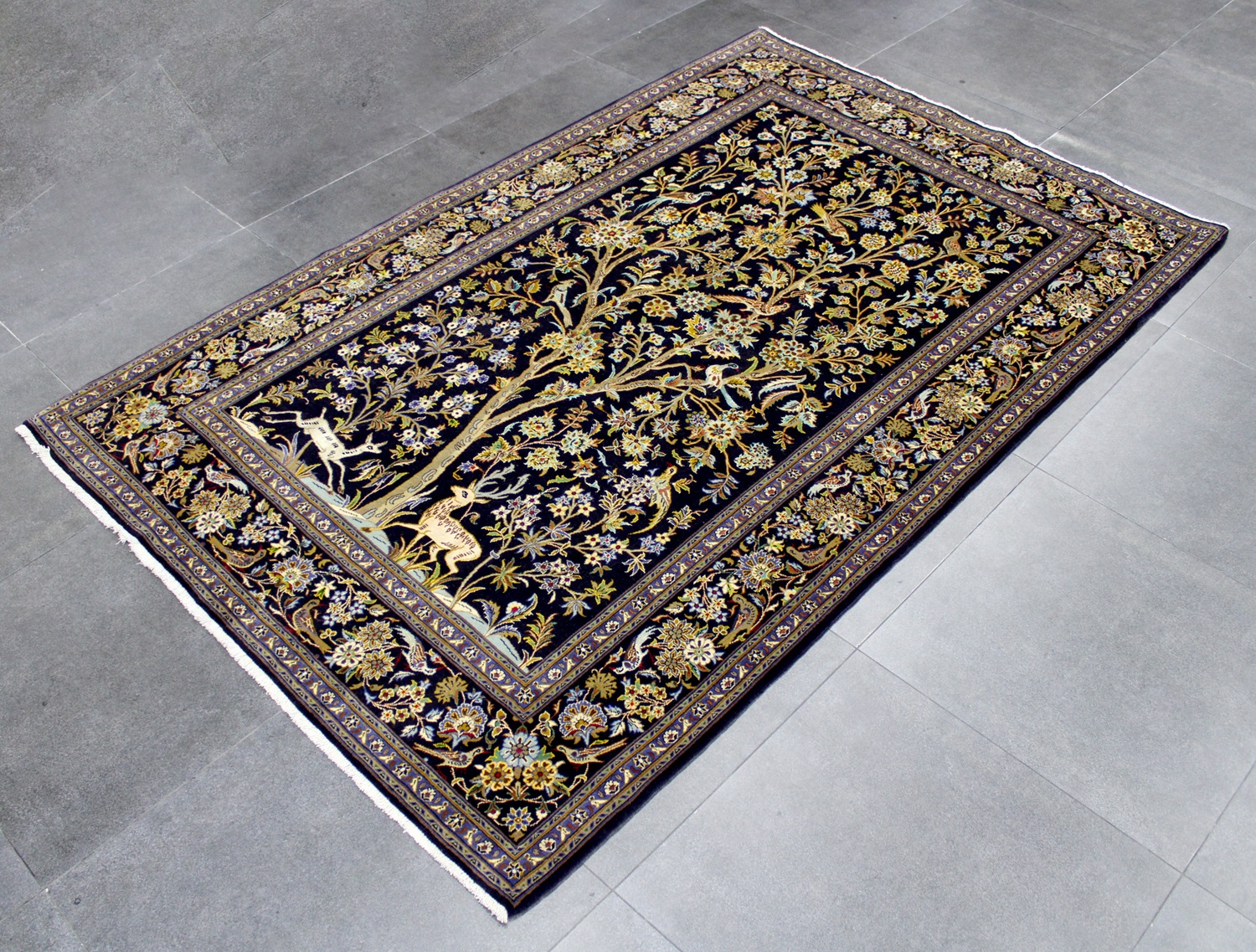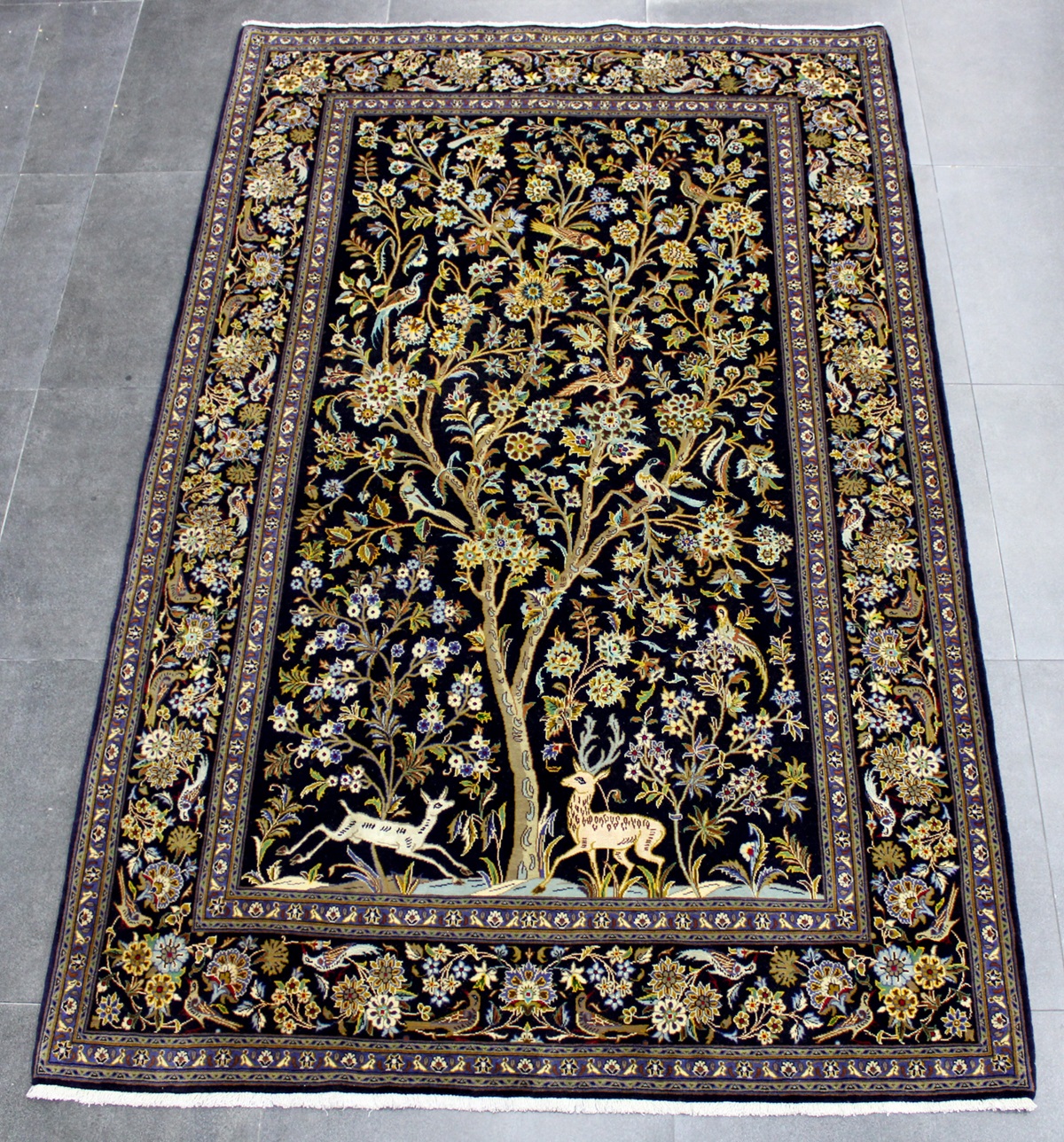سجادة كاشان نقشة شجرة الحياة عمرها فوق 10 سنين صوف كُرك وفيها 3 ألوان حرير شغل يدوي ايراني العجمي