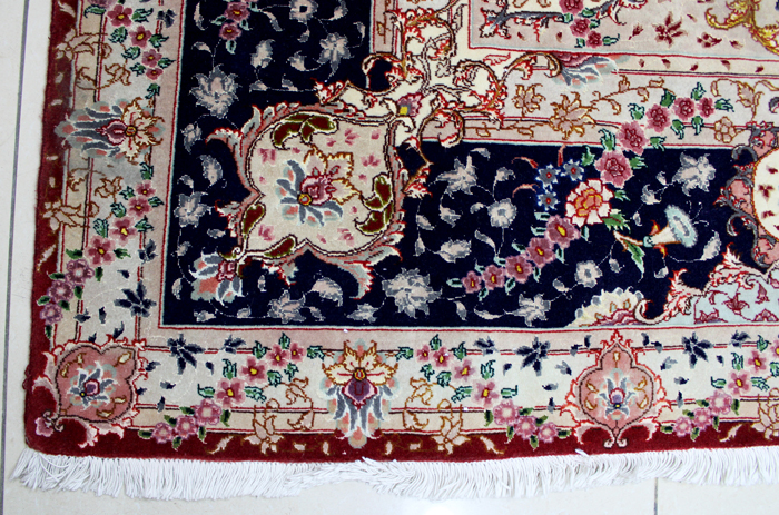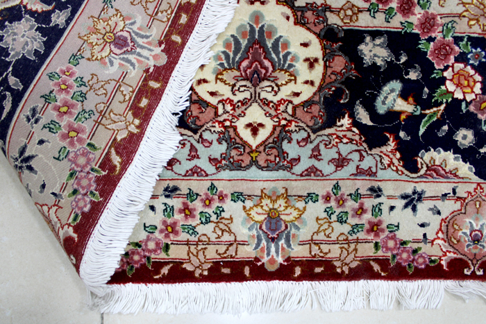 سجادة تبريز جوهر عمرها فوق 10 سنين صوف كُرك وحرير وفيها 50قطبة بالـ7سم شغل يدوي ايراني العجمي