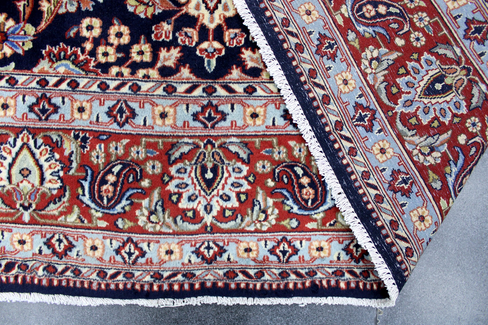سجادة مود خرسان عمرها فوق 10 سنين صوف ناعم وفيها 40 قطبة بالـ7سم شغل يدوي ايراني العجمي