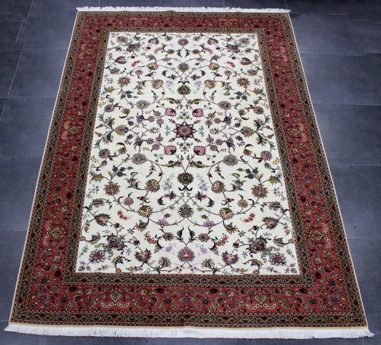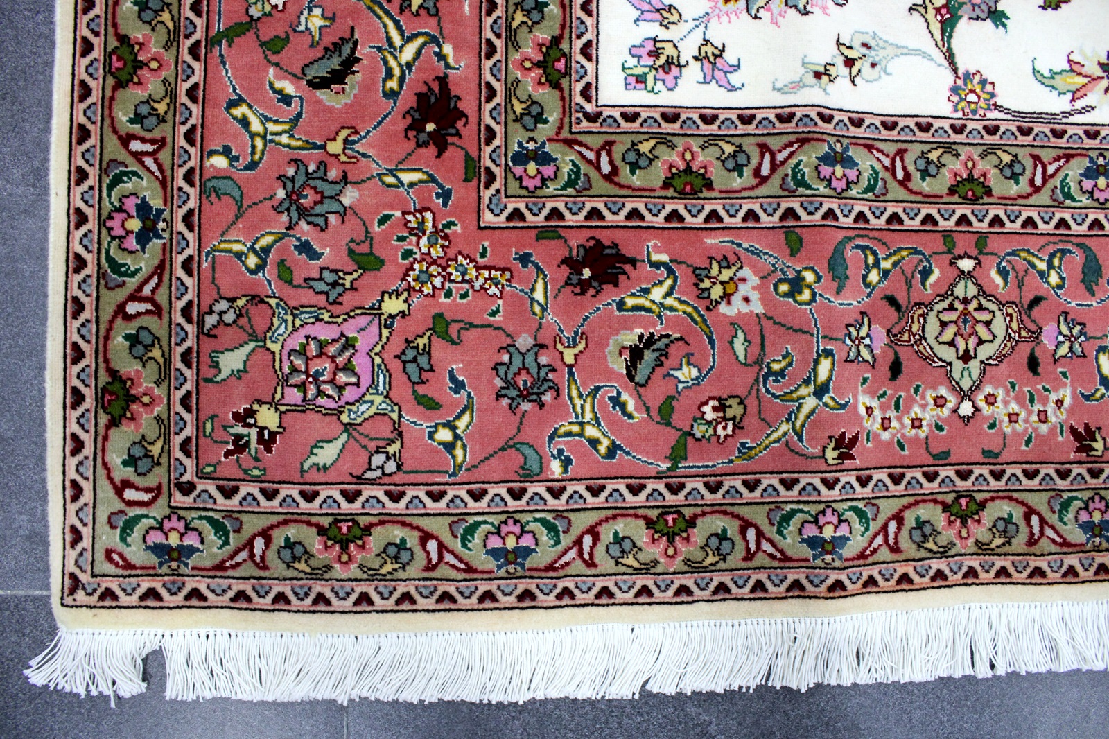 سجادة تبريز جوهر عمرها فوق 10 سنين صوف و3 ألوان حرير وفيها 50 قطبة بالـ 7سم شغل يدوي ايراني العجمي