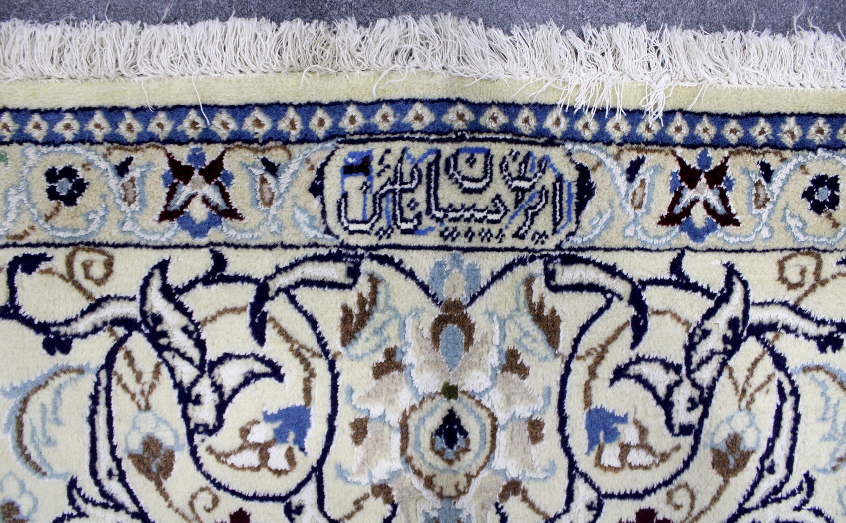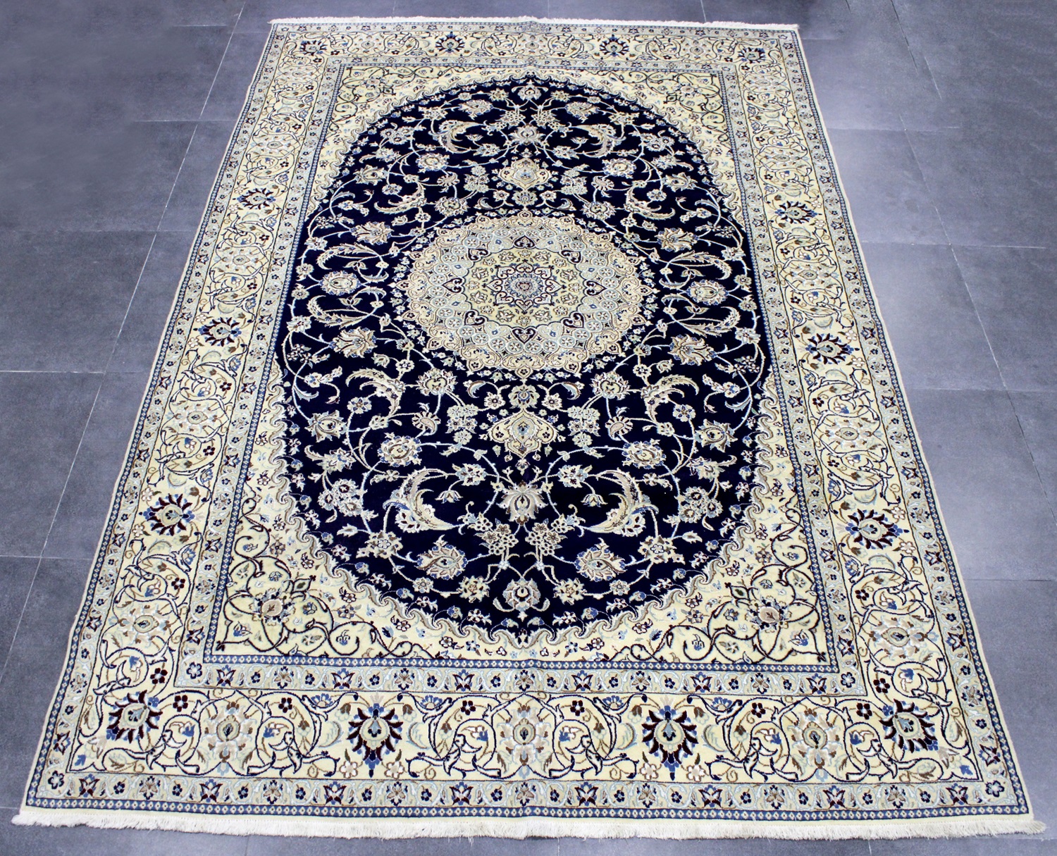 سجادة نايين نُهلا ممضية (إيران نايين حبيبيان) عمرها فوق 5 سنين صوف وحرير شغل يدوي ايراني العجمي