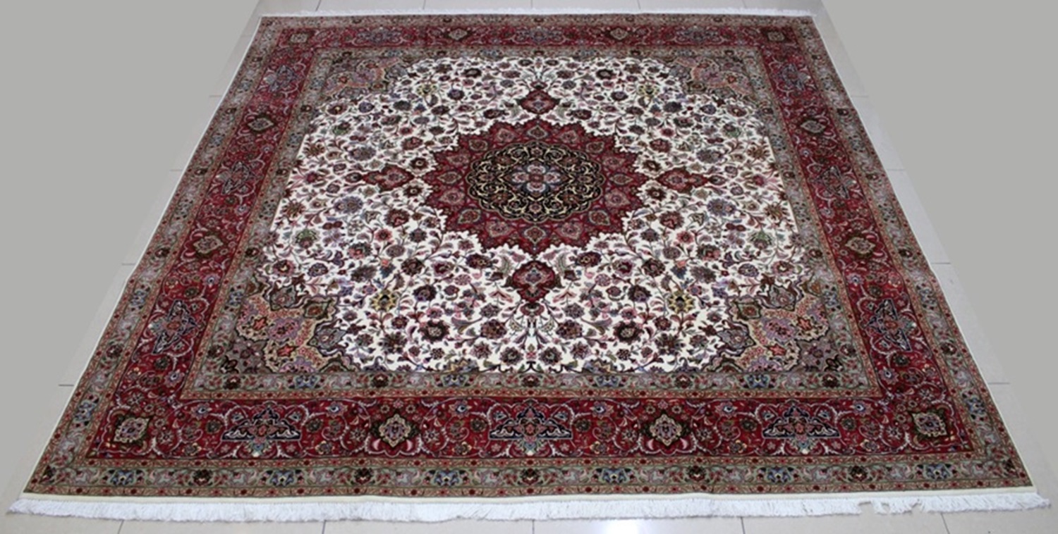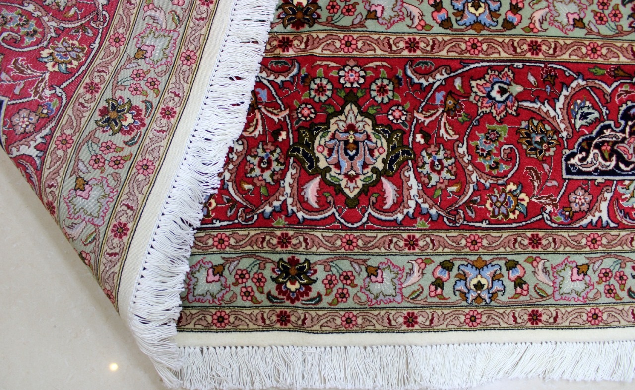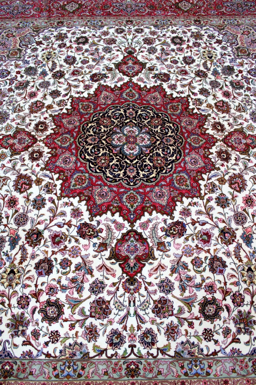 سجادة تبريز جوهر صوف وحرير فيها حوالي 50 قطبة بالـ7سم شغل يدوي ايراني العجمي