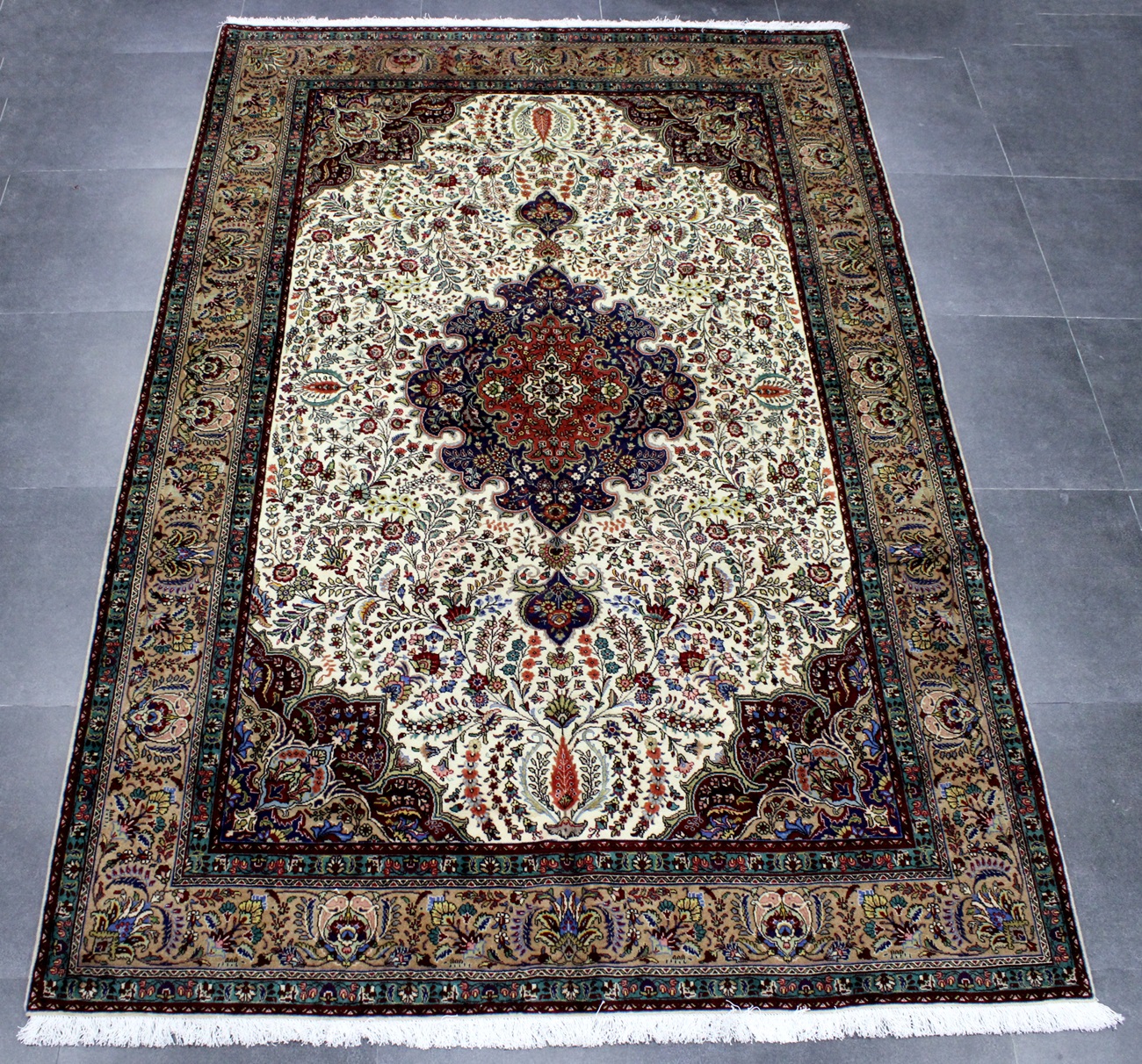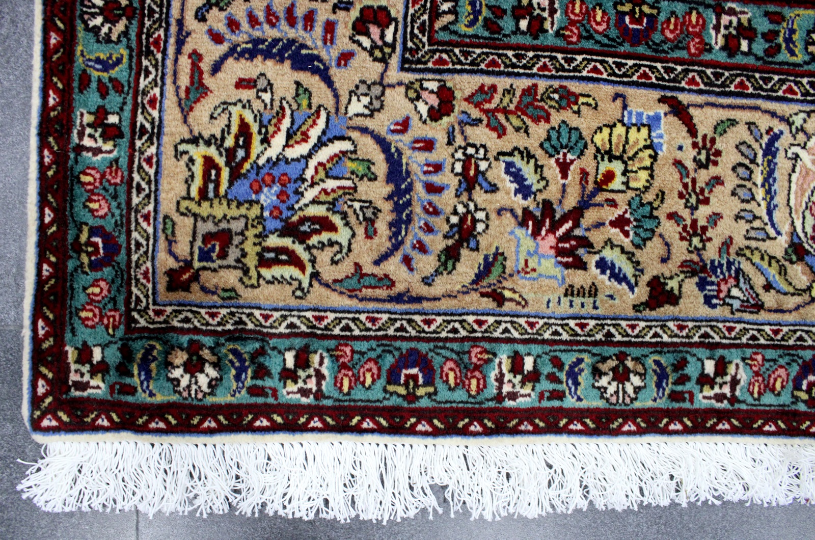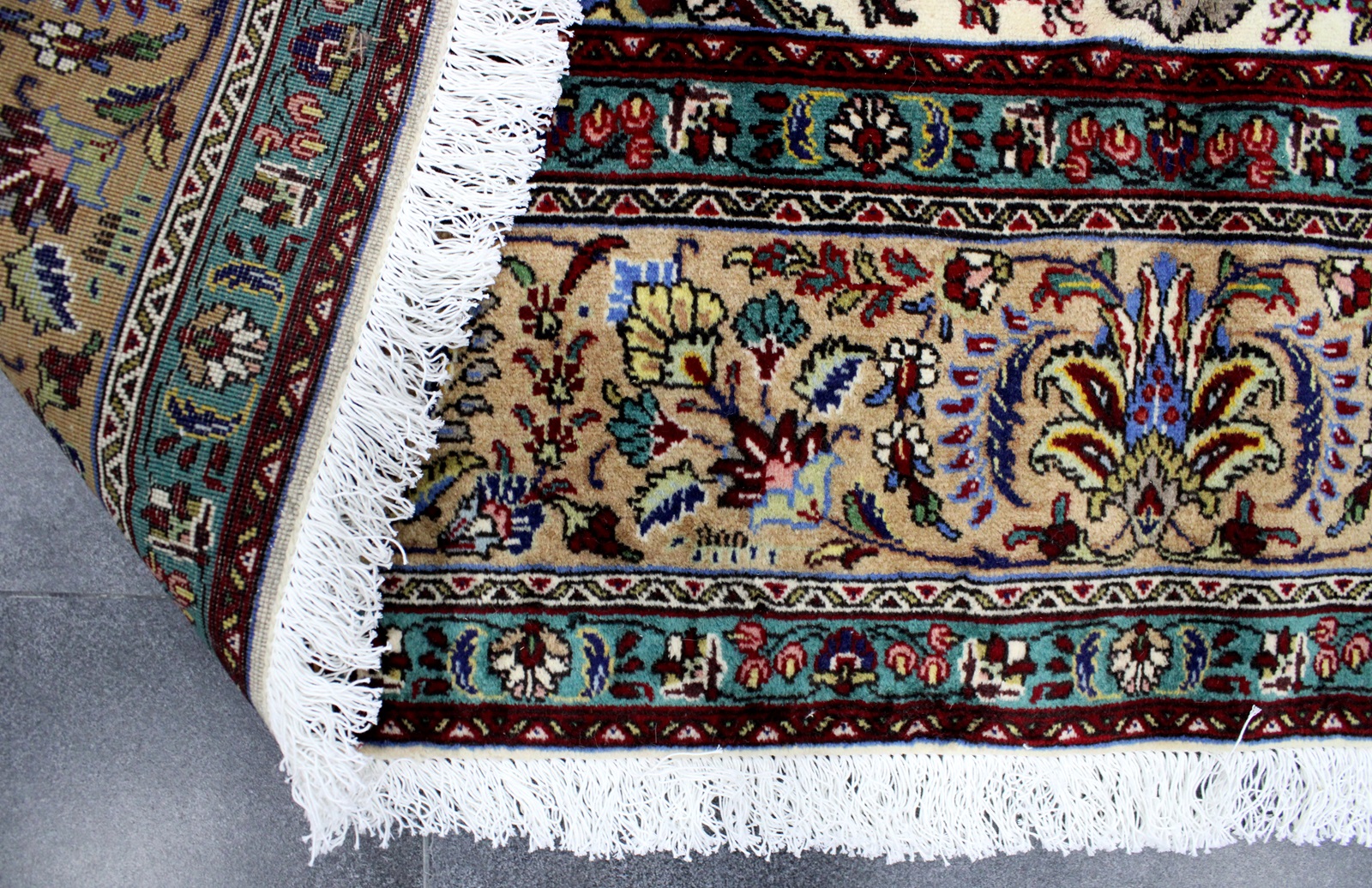 سجادة تبريز عمرها فوق 10 سنين صوف ناعم وفيها 40 قطبة بالـ7سم شغل يدوي ايراني العجمي