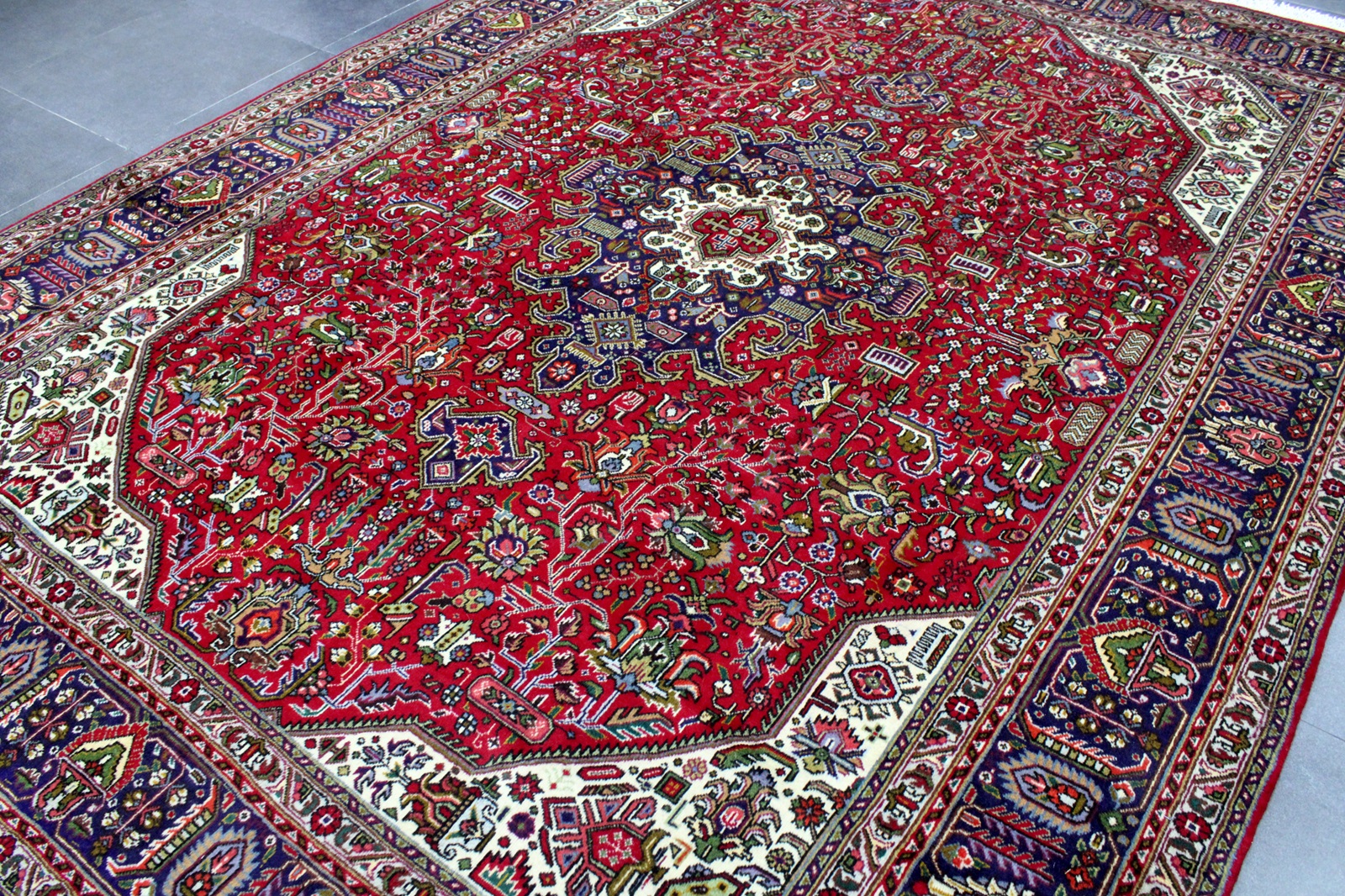 سجادة تبريز آذر شهر عمرها فوق 10 سنين صوف شغل يدوي ايراني العجمي