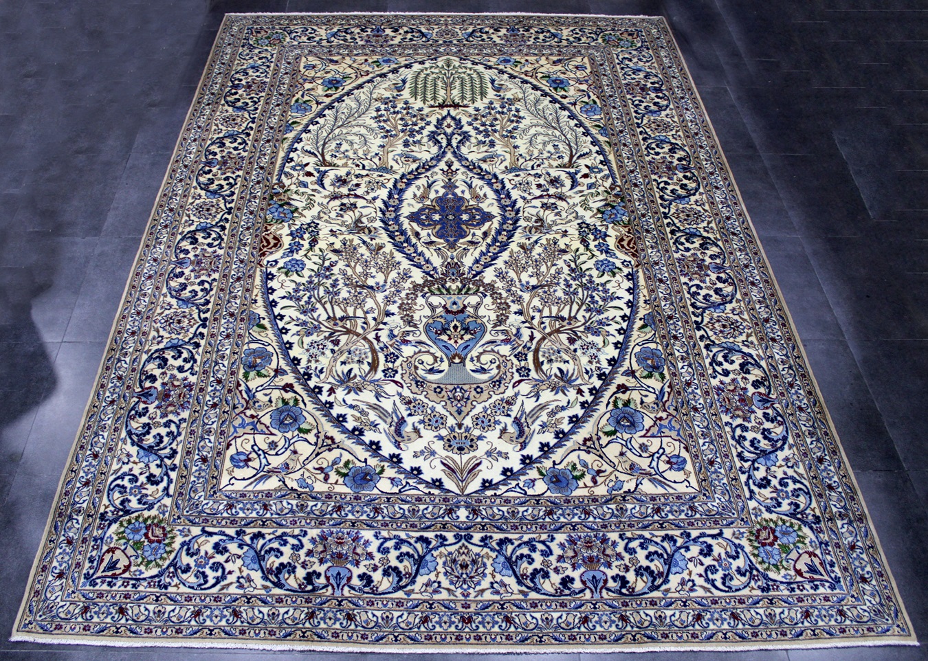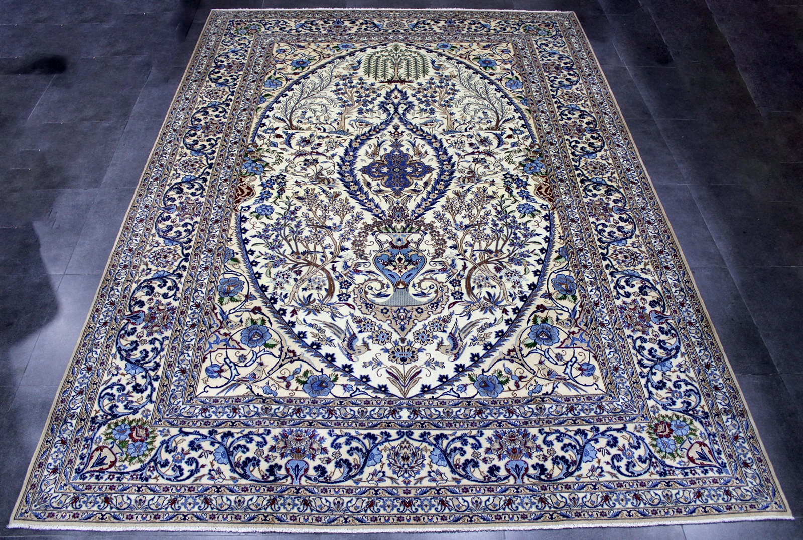 سجادة نايين نُهلا نقشة شجرة الحياة عمرها فوق 10 سنين صوف وحرير شغل يدوي ايراني العجمي