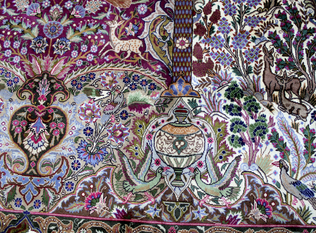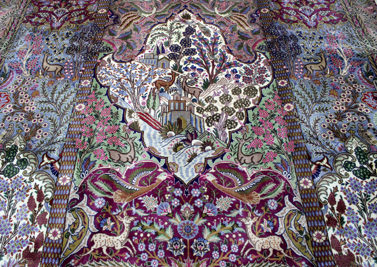 سجادة كشمر نقشة جنة الحياة عمرها فوق 10 سنين صوف شغل يدوي ايراني العجمي