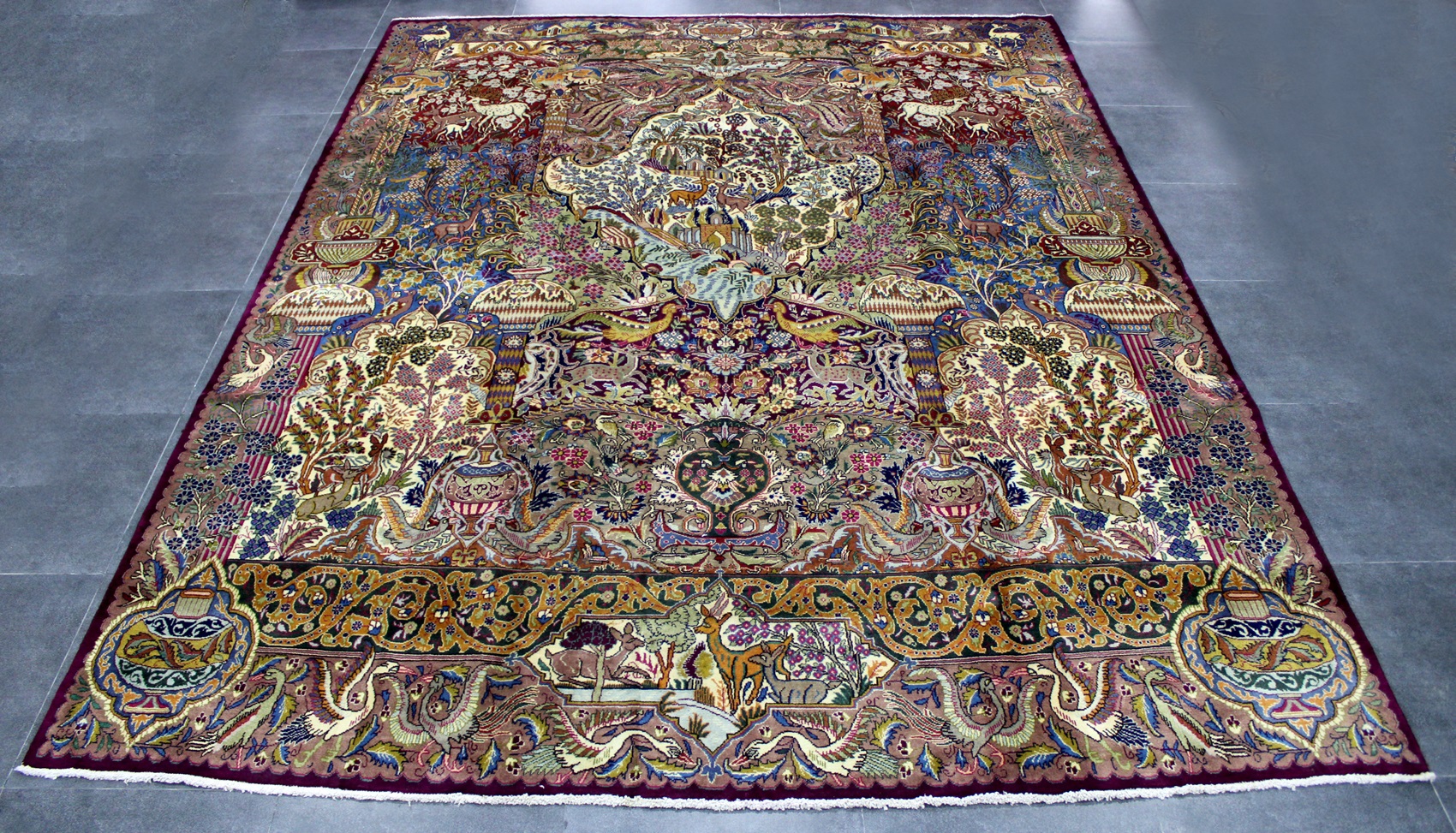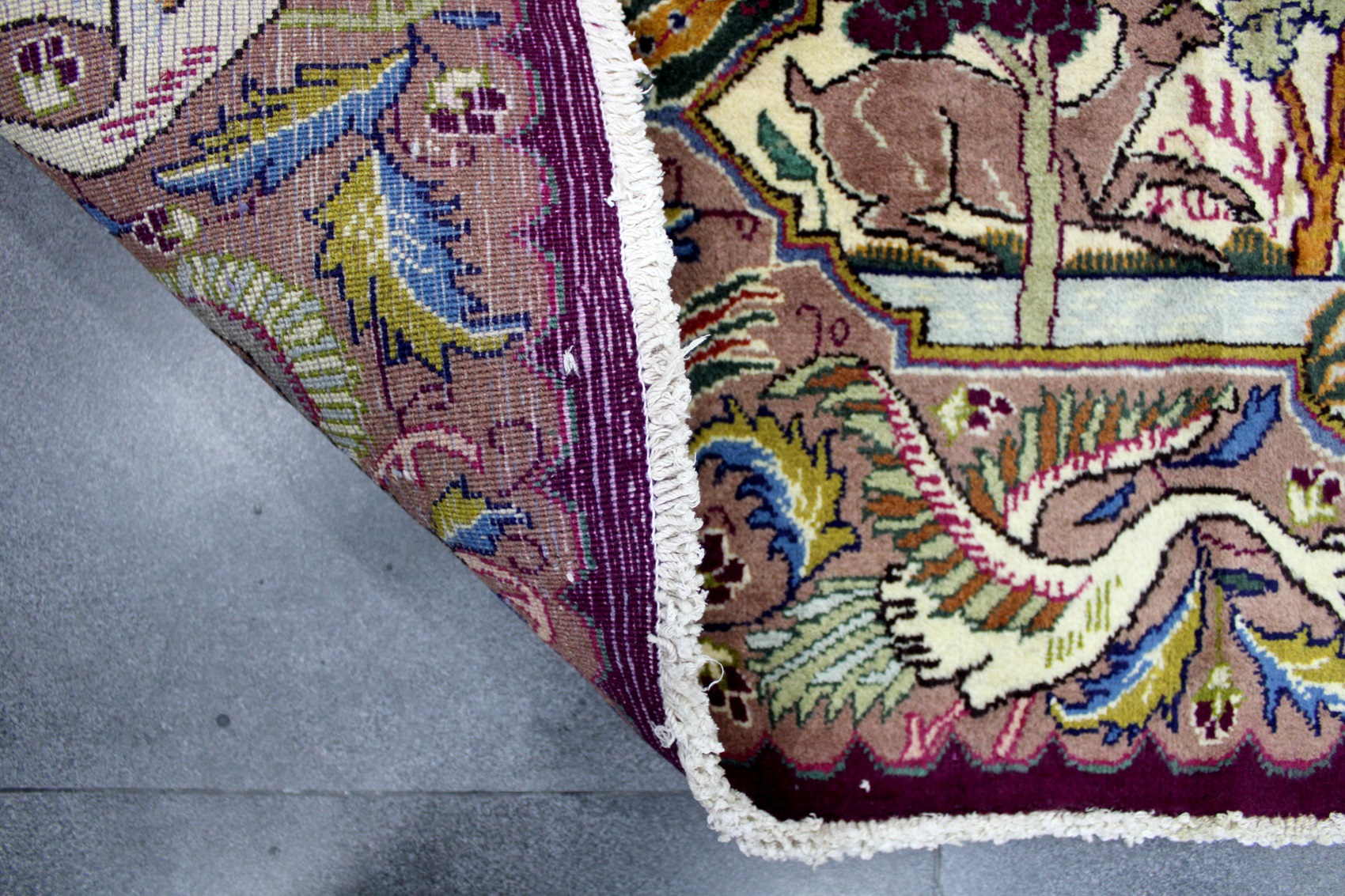 سجادة كشمر نقشة شجرة الحياة عمرها فوق 10 سنين صوف شغل يدوي ايراني العجمي