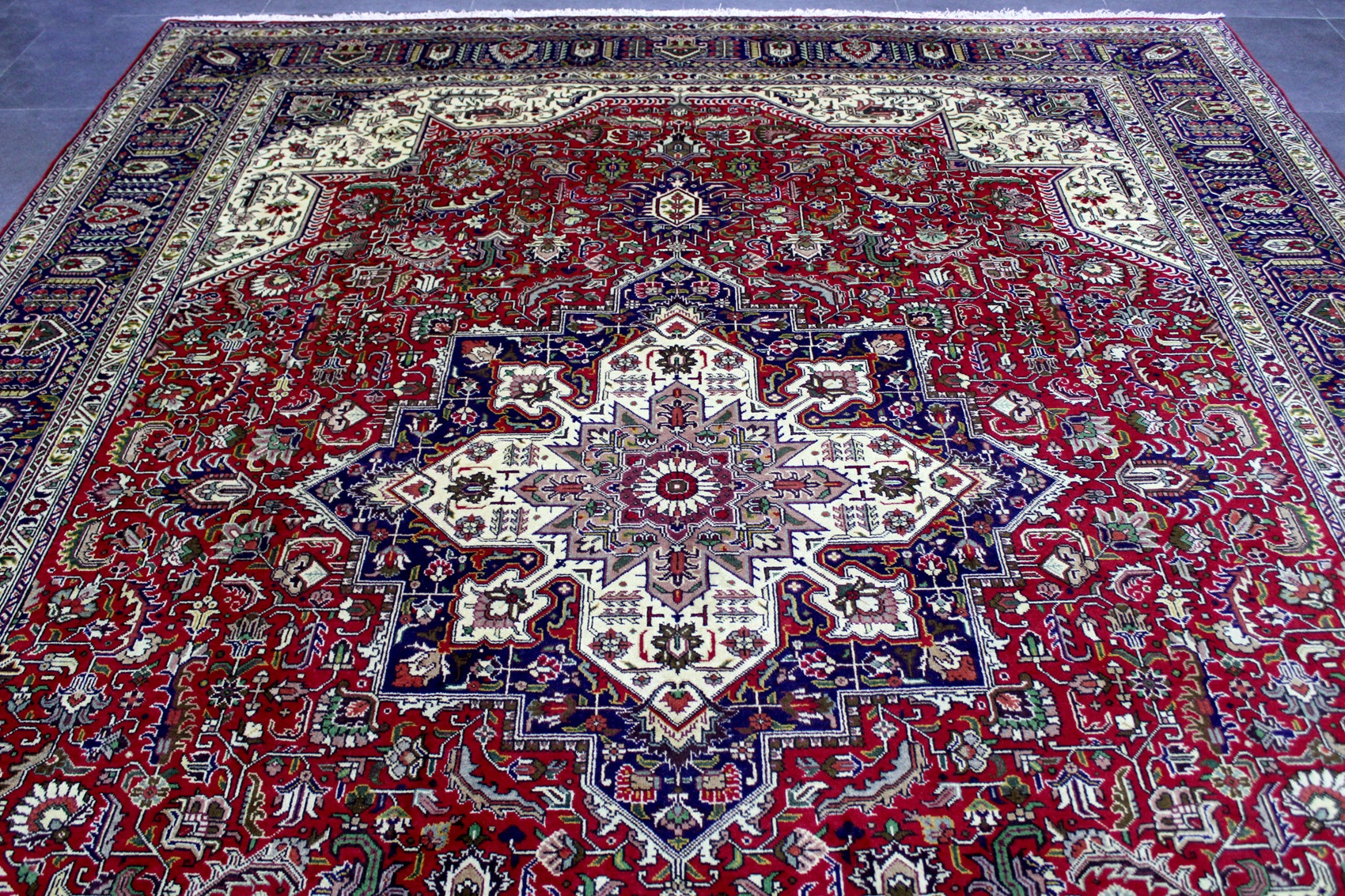 سجادة تبريز آذر شهر عمرها فوق 10 سنين صوف شغل يدوي ايراني العجمي