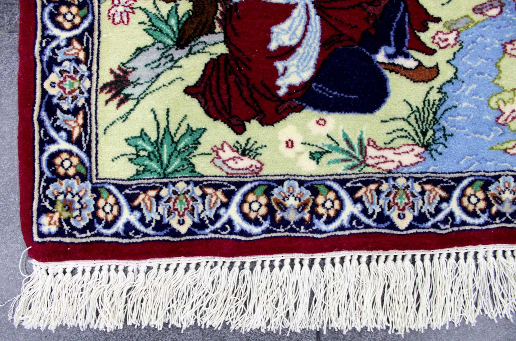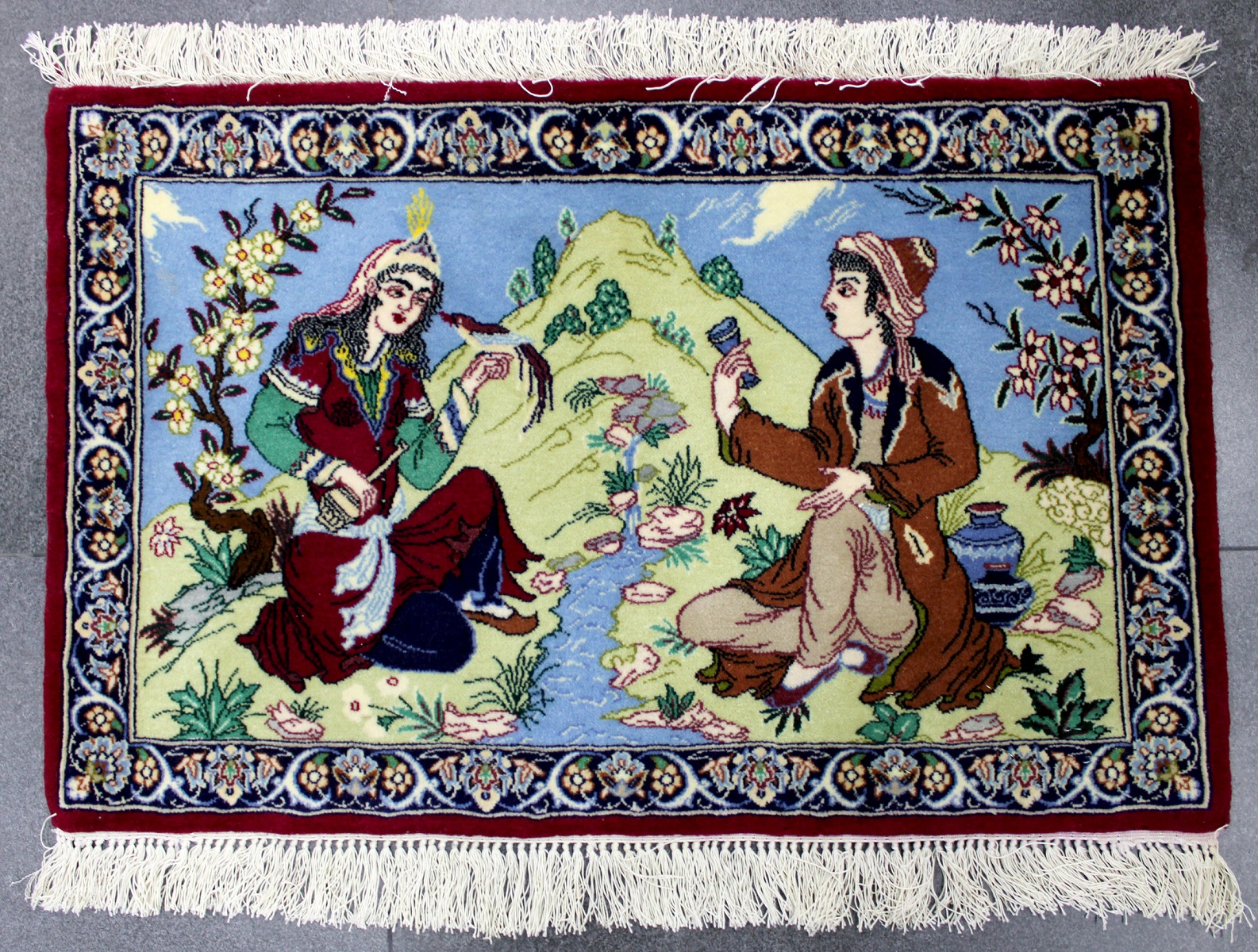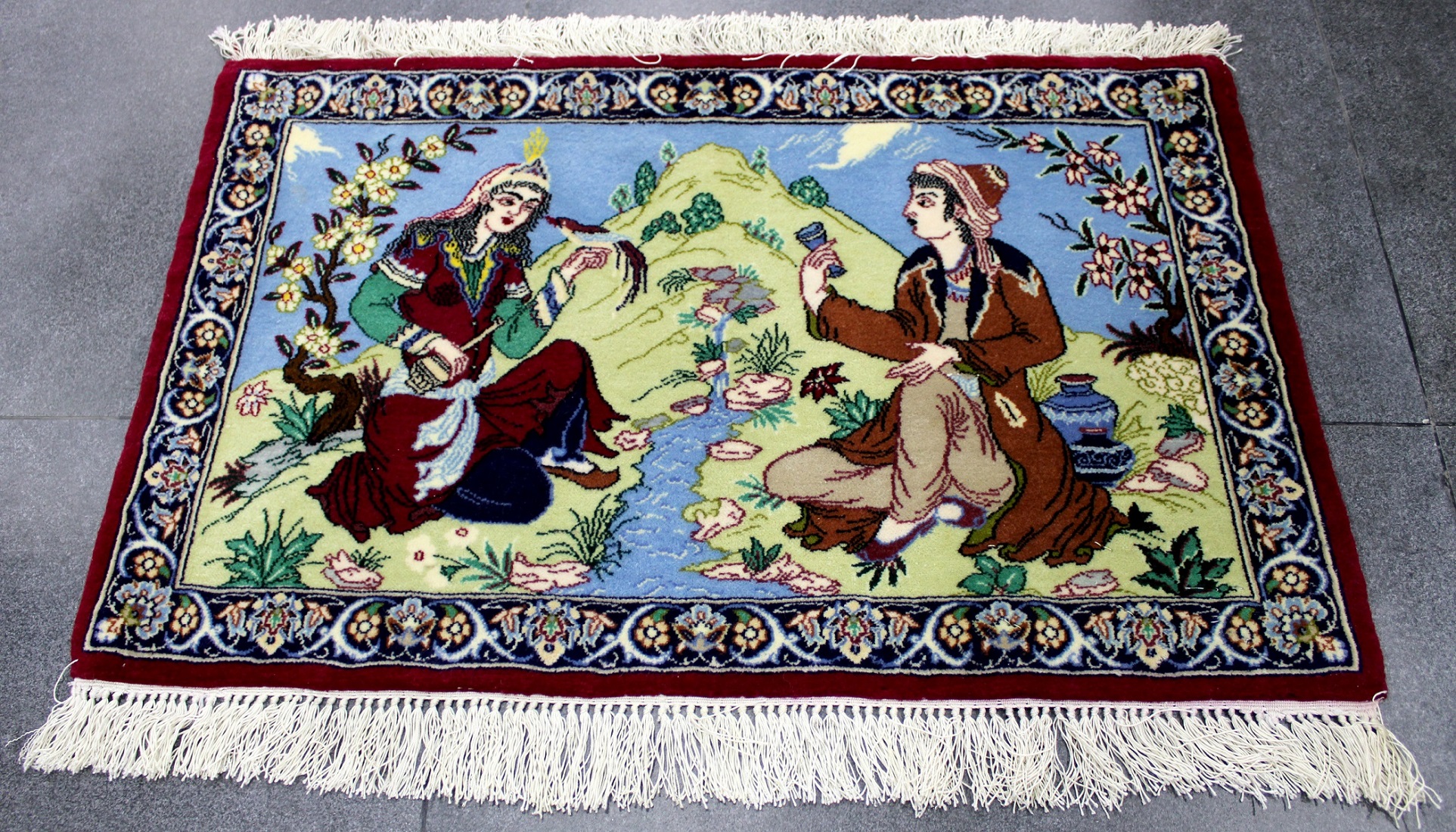 سجادة أصفهان تابلو صوف كُرك وحرير فيها 60 قطبة بالـ7سم شغل يدوي ايراني العجمي